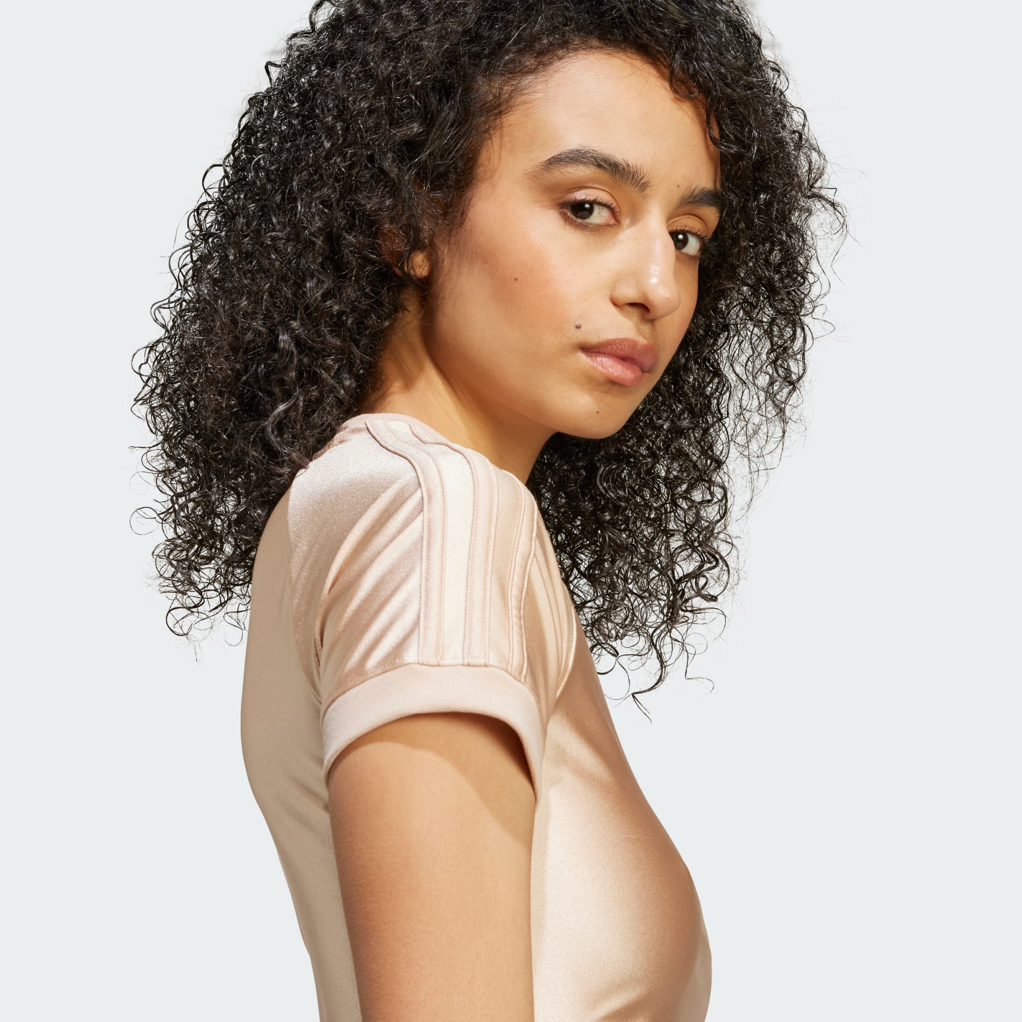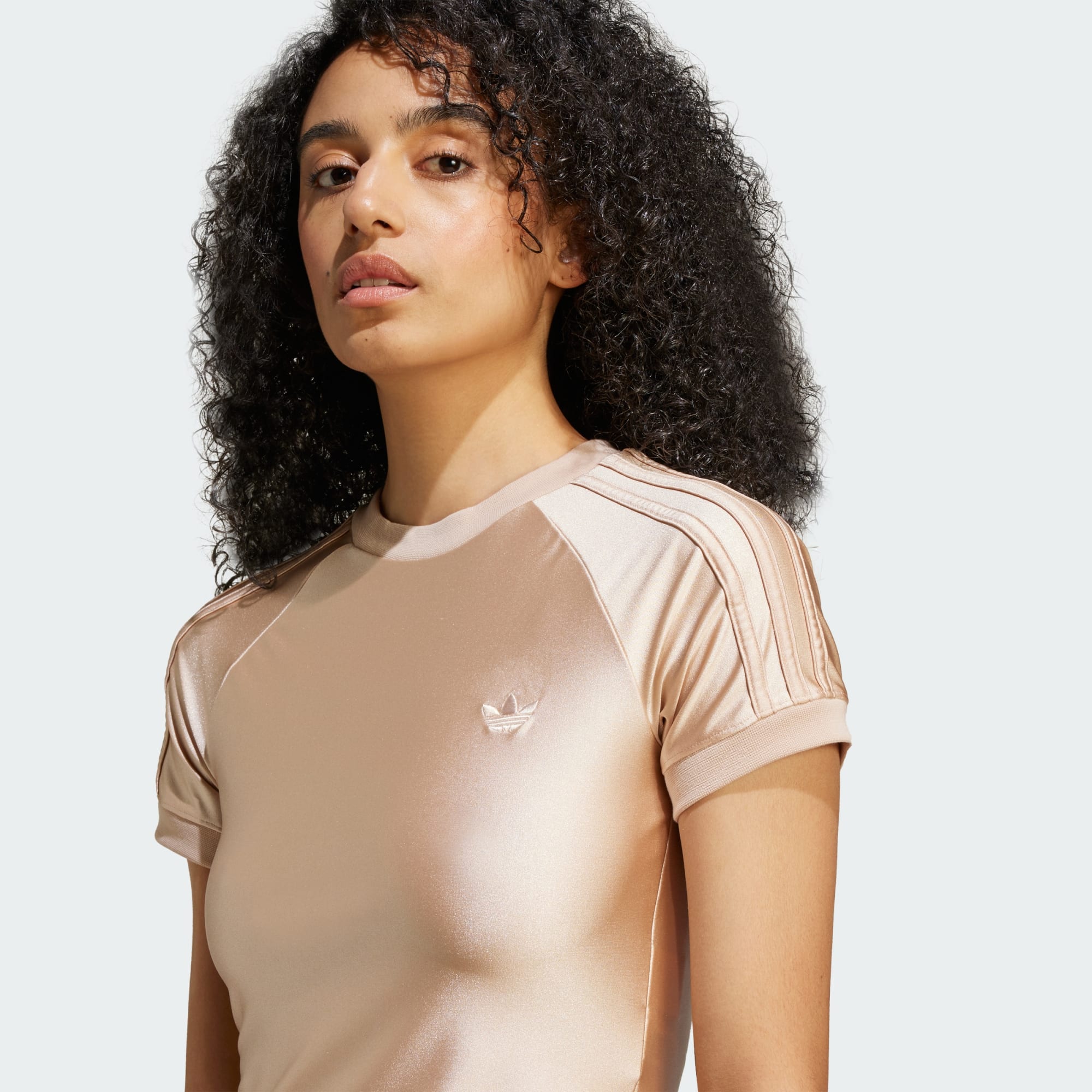 A shiny, body-hugging adidas tee with an archival cut line.