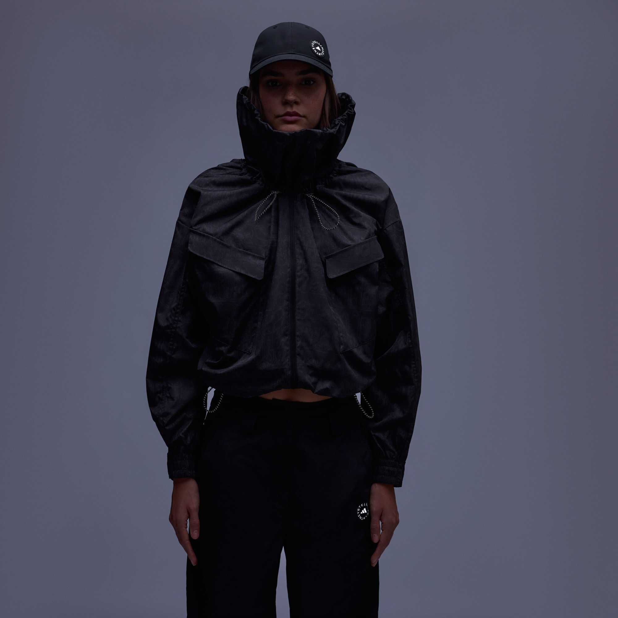 Designed for women on the move, this adidas by Stella McCartney jacket takes sport DNA and plays up the drama. The oversized double collar and adjustable details let you customise the fit and accentuate the silhouette. Dual front pockets stow small essentials. Mix and match it. Dress it up or keep it casual. This jacket creates more than just warmth — it creates a bold visual fashion statement however you style it..