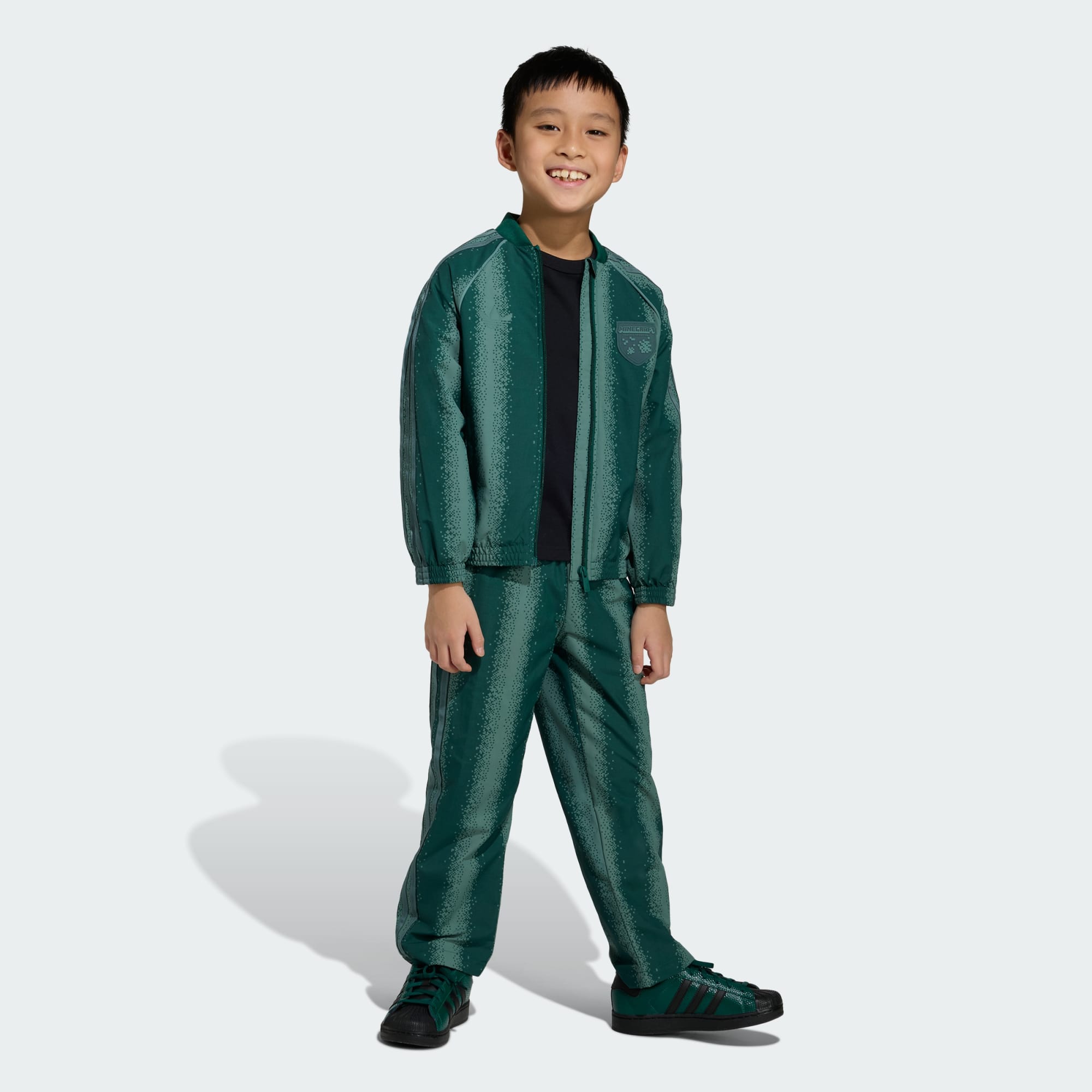 The adidas Minecraft Tracksuit is where the world of gaming meets street style. Inspired by the iconic Minecraft dimensions, this tracksuit brings the game to life with its unique design and vibrant colours. It's great choice for kids who love to express their creativity and passion for gaming. Crafted with a regular fit, this tracksuit offers comfort and freedom of movement, making it suitable for playtime or casual outings. The bomber neckline adds a touch of classic style, while the zip closure offers easy on and off convenience. Made with a knit fabric, it provides a soft and cosy feel, keeping kids comfortable throughout the day. The Trefoil branding adds a signature adidas touch, making this tracksuit a must-have for young Minecraft fans.