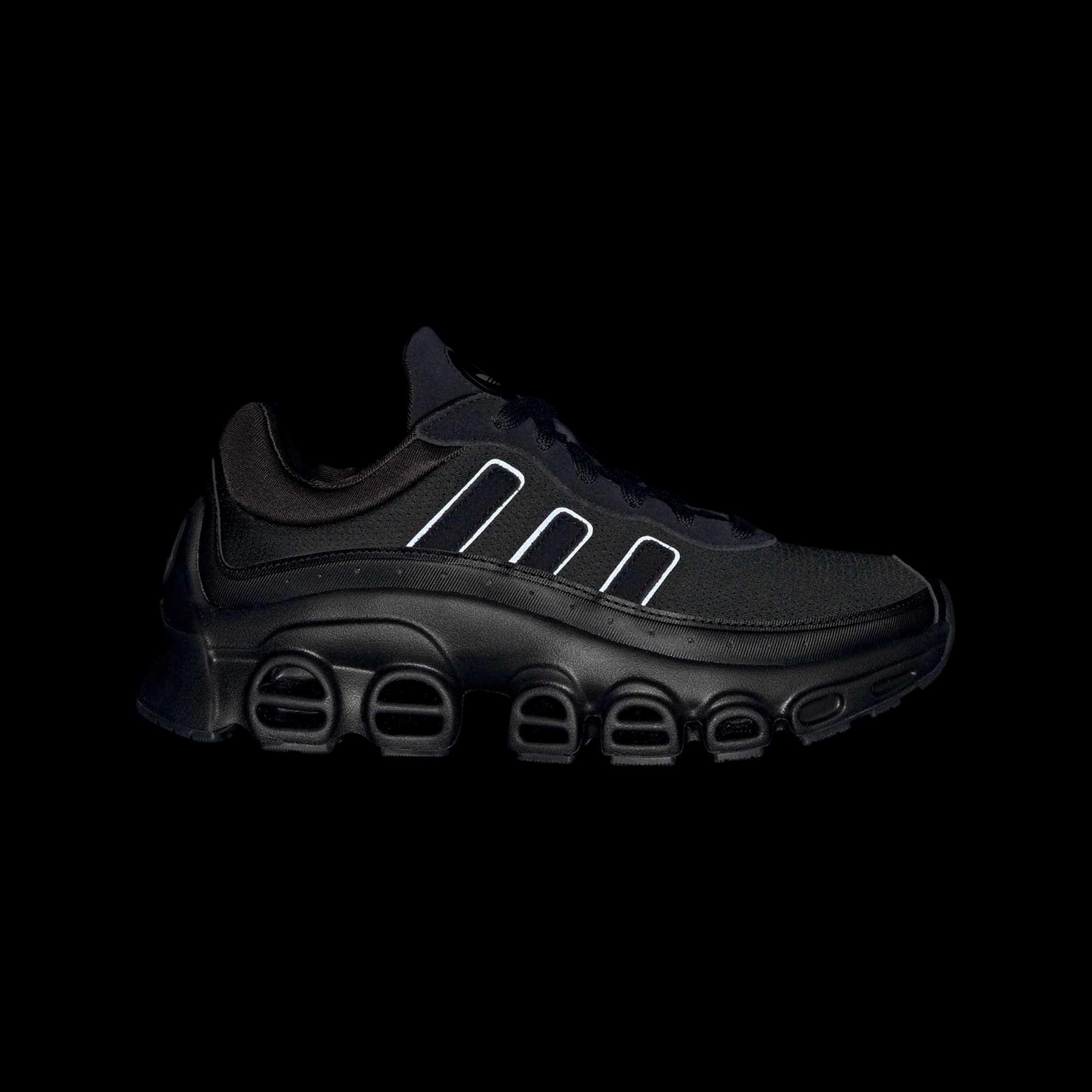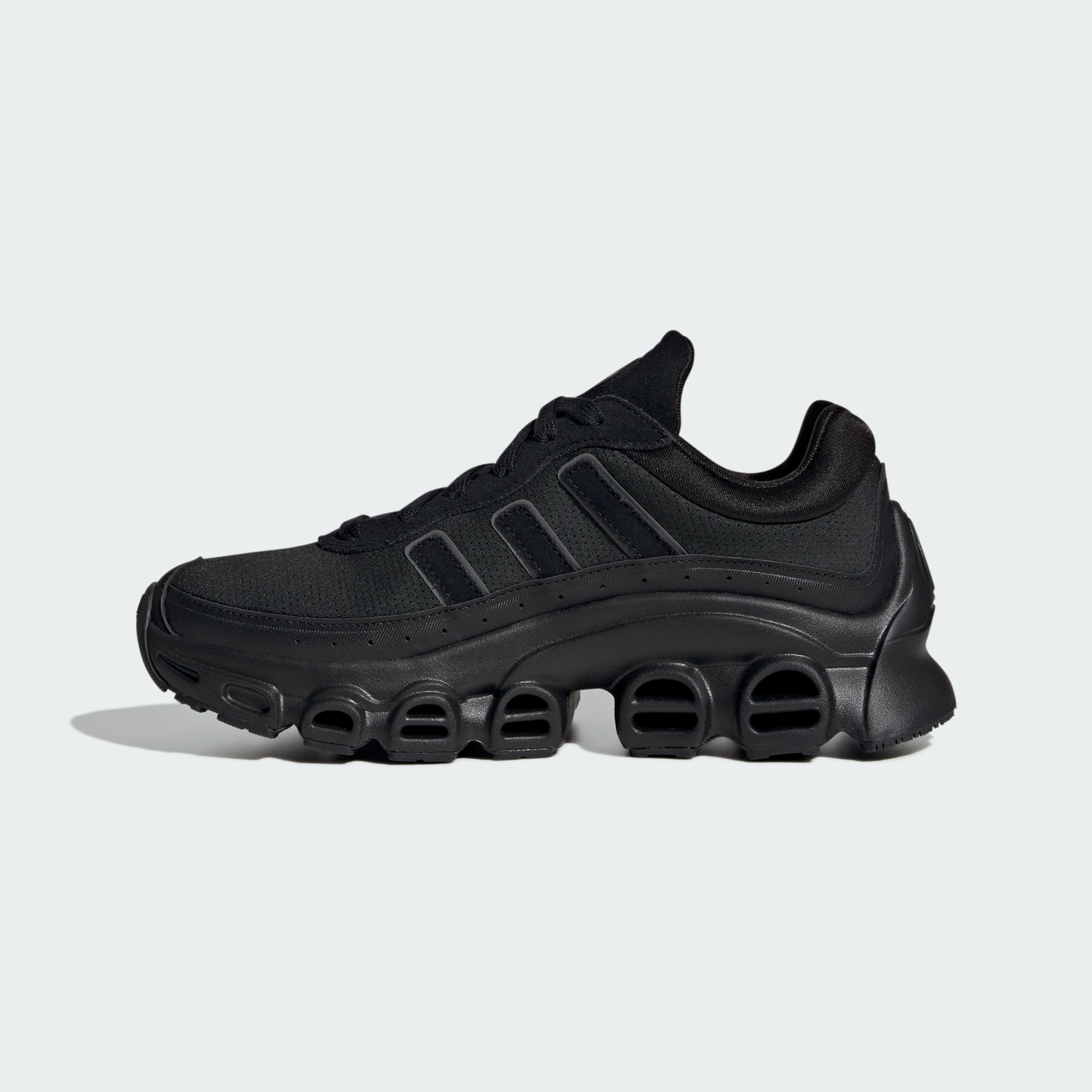 Inspired by an iconic adidas tech runner from the 2000s, these juniors' Adifom Megaride shoes stand out in any situation. The EVA midsole and mixed material upper deliver comfort and style in equal measure. A neoprene collar and outsole tunnels complete the modern yet archive-inspired look.