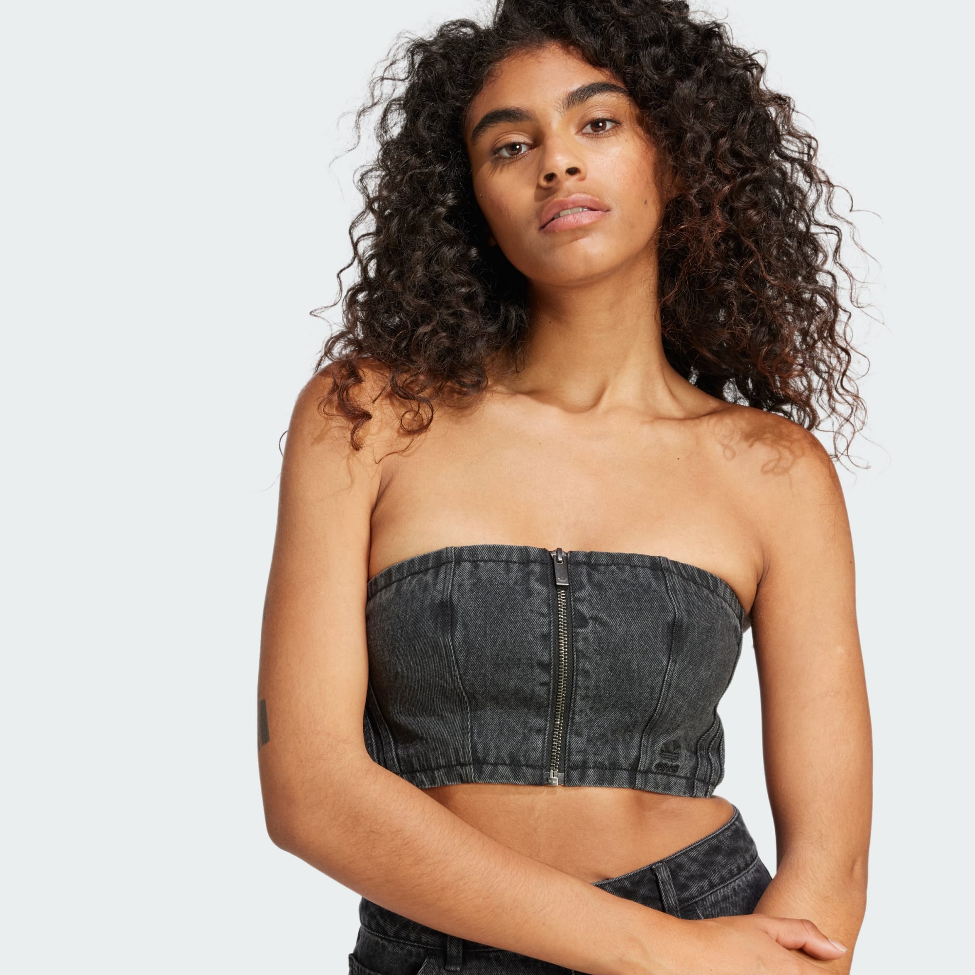 This adidas Originals tube top takes denim to a whole new place, featuring a front centre zip and elastic on the back to cater to and celebrate all different body tops. The tight, form-fitting cut and lightweight wash give you a freeing feel, while the subtle distressing adds a touch of vintage attitude. Pair it with high-rise pants or layer it under an open shirt. However you wear it, the iconic Trefoil logo lets everyone know you're connected to a legacy of creators and boundary pushers.