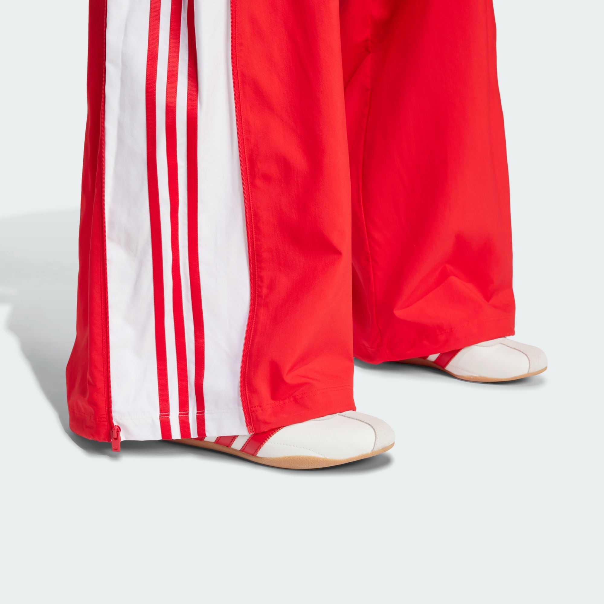 The 3-Stripes on these adidas pants have two purposes — celebrate their adidas DNA boldly, and to emphasise the wide leg silhouette. The flowing look can be adjusted at the cuffs, with a pearl at the stopper of the bungees for added decadence. A two-way zip on the side allows you to play with the aesthetic even further, by creating more of a balloon shape with the volume. This product is made with 100% recycled materials. By reusing materials that have already been created, we help to reduce waste and our reliance on finite resources and reduce the footprint of the products we make.