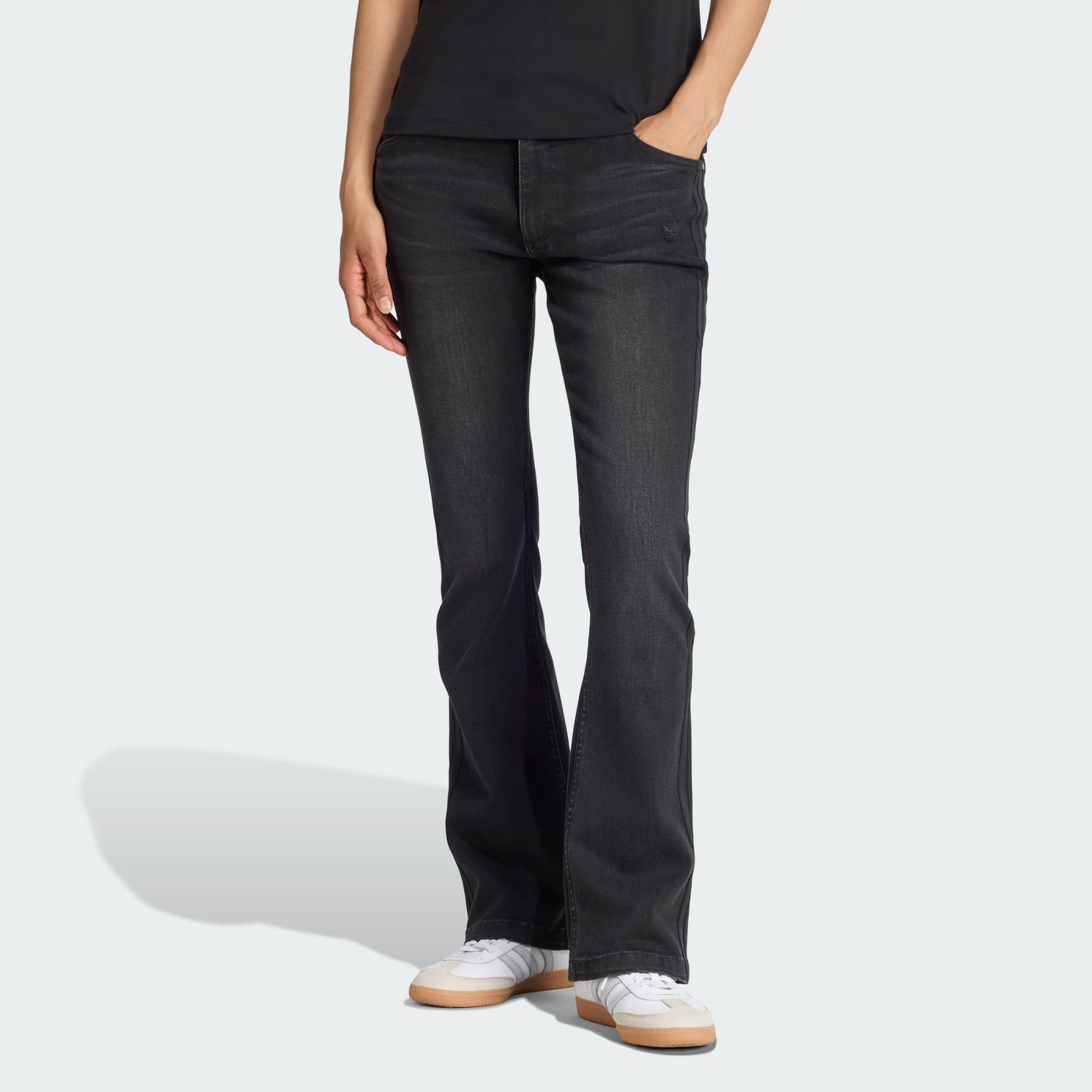 Inspired by the Teamgeist football design that changed the beautiful game, these adidas denim pants bring a bold spirit to any outfit. The slim fit hugs the body for a flattering silhouette, and the wider flare at the hem adds a retro-inspired detail. Made from durable cotton twill and enzyme washed for a soft feel, these pants are a go-to for comfort and style.