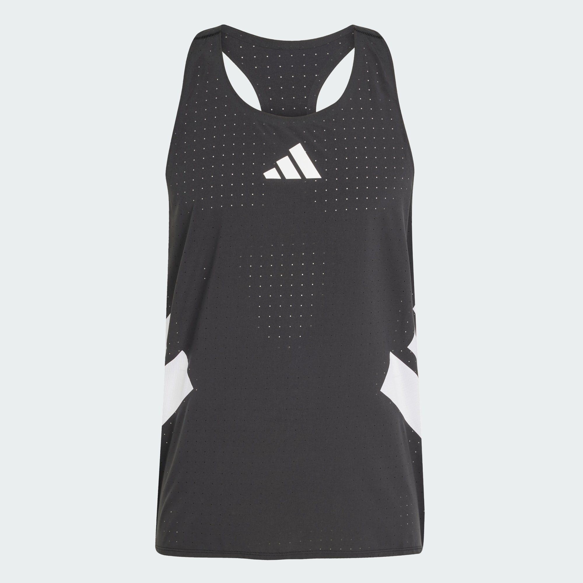 Through every sweat-soaked moment on the road to new records, this adidas running singlet assists you with cooling comfort and distraction-free performance. Stretchy fabric with punched holes is superlight and breathable, so nothing holds you back from your best. The side seams are moved forward and inner seams are sealed to prevent chafing. This product is made with at least 70% recycled materials. By reusing materials that have already been created, we help to reduce waste and our reliance on finite resources and reduce the footprint of the products we make.