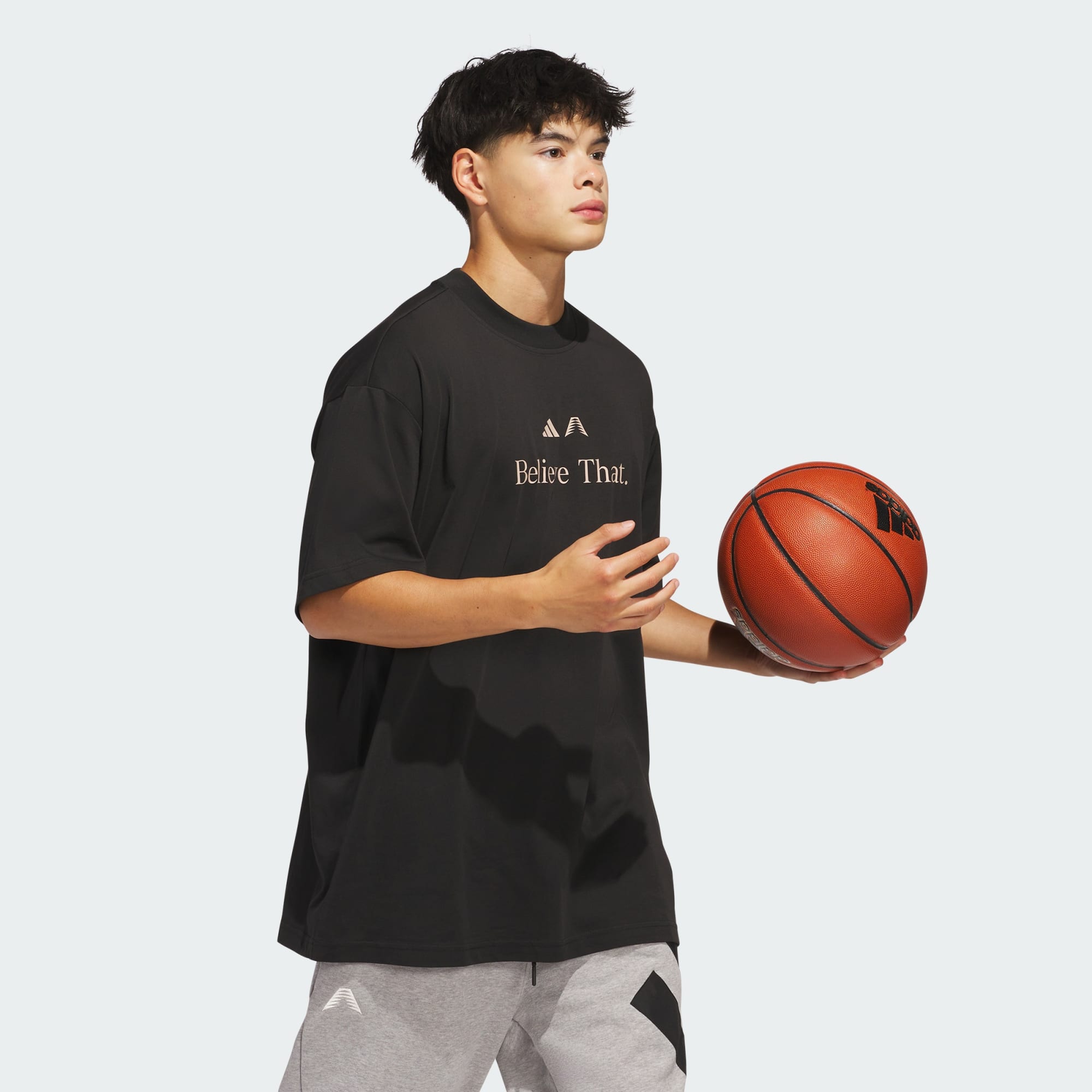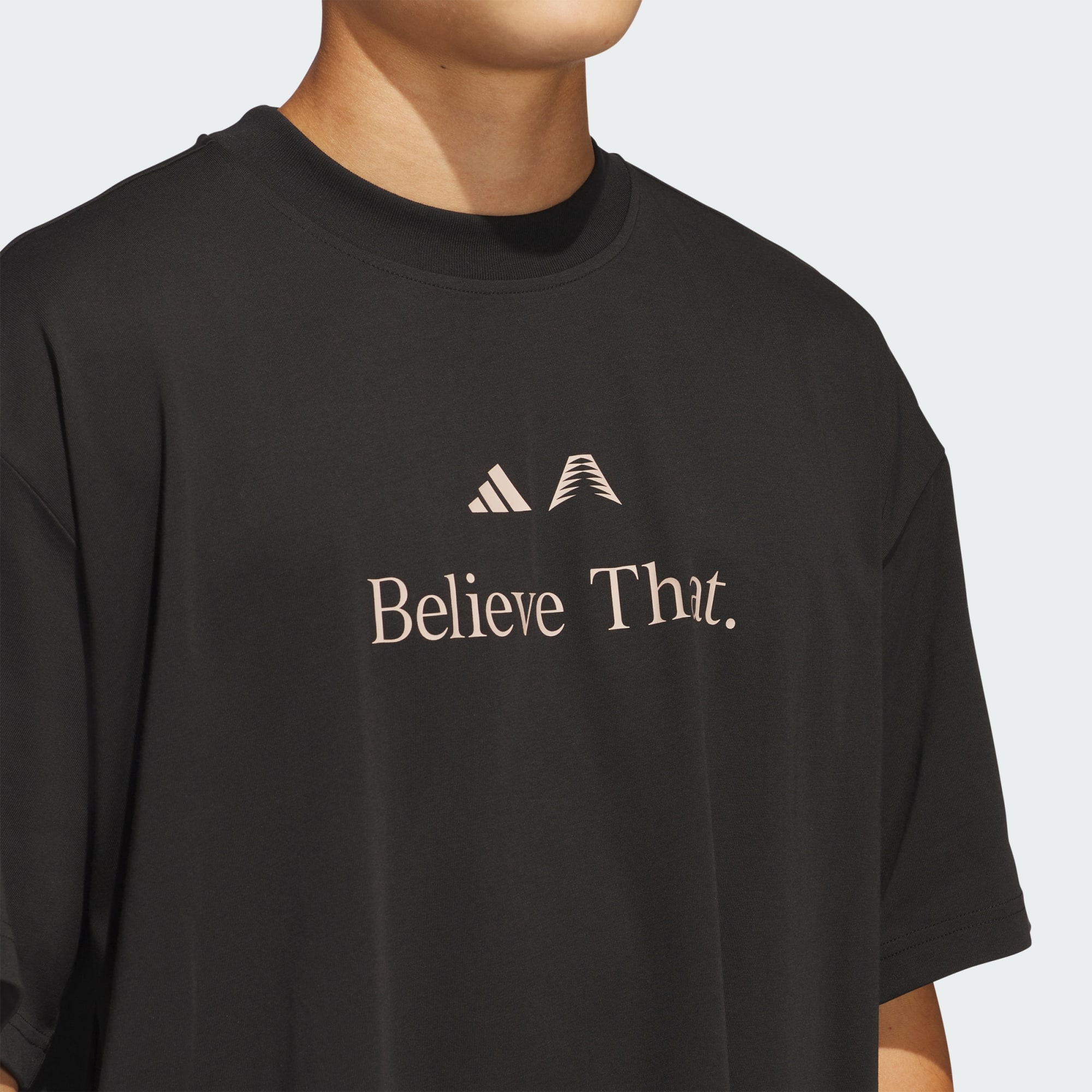 Anthony Edwards is just getting started. This t-shirt from adidas Basketball is all about what comes next. The cotton and polyester single jersey build is soft and durable, while the loose fit lets you flow effortlessly up and down the hardwood. An Anthony Edwards logo and a "Believe. That." graphic say all that needs to be said.