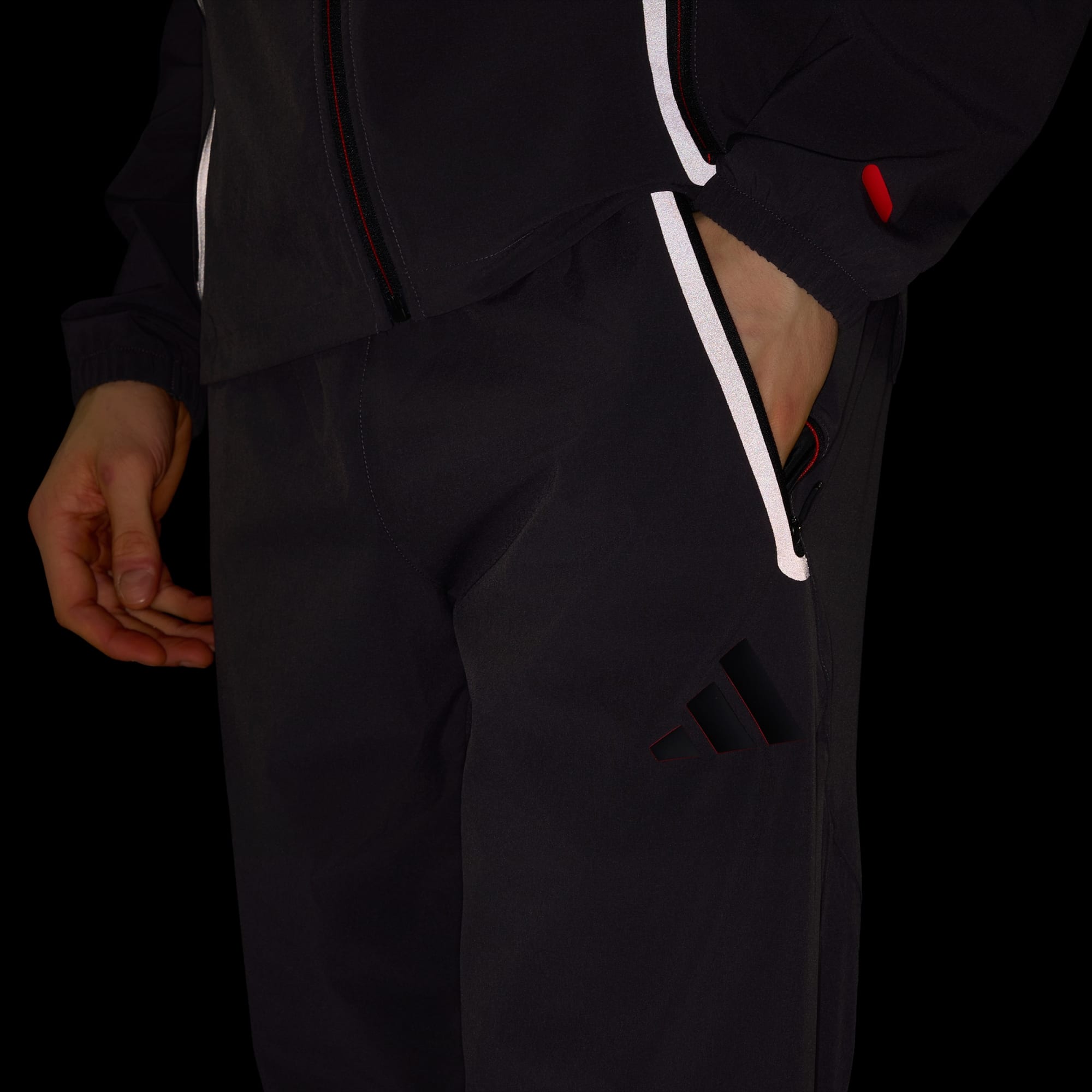 Introducing the Audi Formula One Team DNA Vis Tech Track Trousers, designed for those who value both performance and style and want to embody the dynamic spirit of the F1 team. With a regular fit, they offer comfortable wear for everything from training to travel. They feature zipped side pockets for keeping your essentials secure. The elasticised waistband with a drawcord gives a customised fit, while the zipped leg openings offer ease of movement. There's a small reflective print near the zip to complete the look. Whether you’re pushing your limits on the track or embracing a sleek, sporty look off it, these adidas trousers will help you feel comfortable and confident.