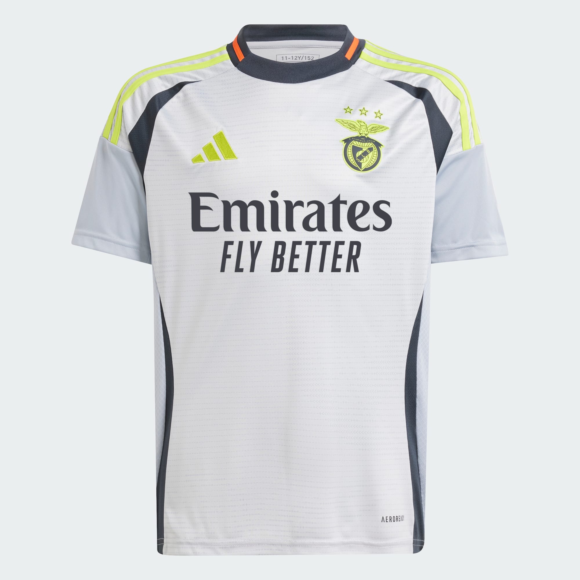 An unbreakable connection. Look closely at this juniors' adidas Benfica jersey and you'll see its subtle club crest design is made up of tiny mathematical symbols. Representing football fandom in the digital age, the graphic is randomly placed, making each shirt unique. While bright yellow details stand out, AEROREADY lies buried beneath the code, keeping fans and players dry and focused.This product is made with 100% recycled materials. By reusing materials that have already been created, we help to reduce waste and our reliance on finite resources and reduce the footprint of the products we make.