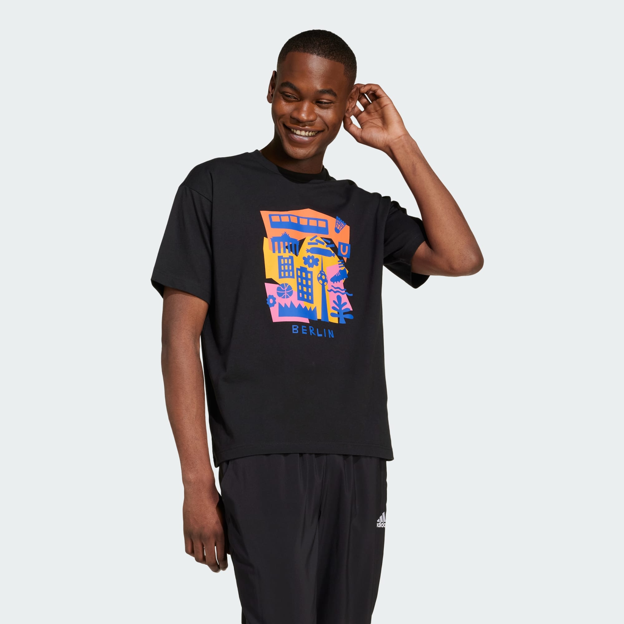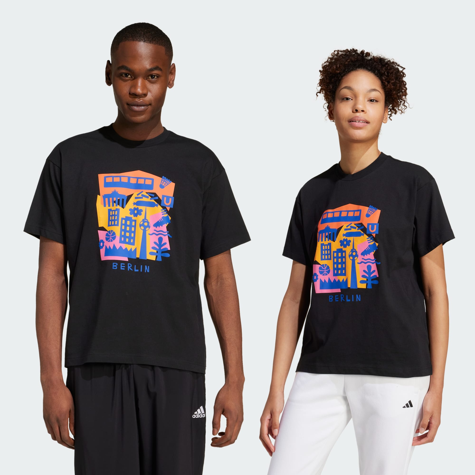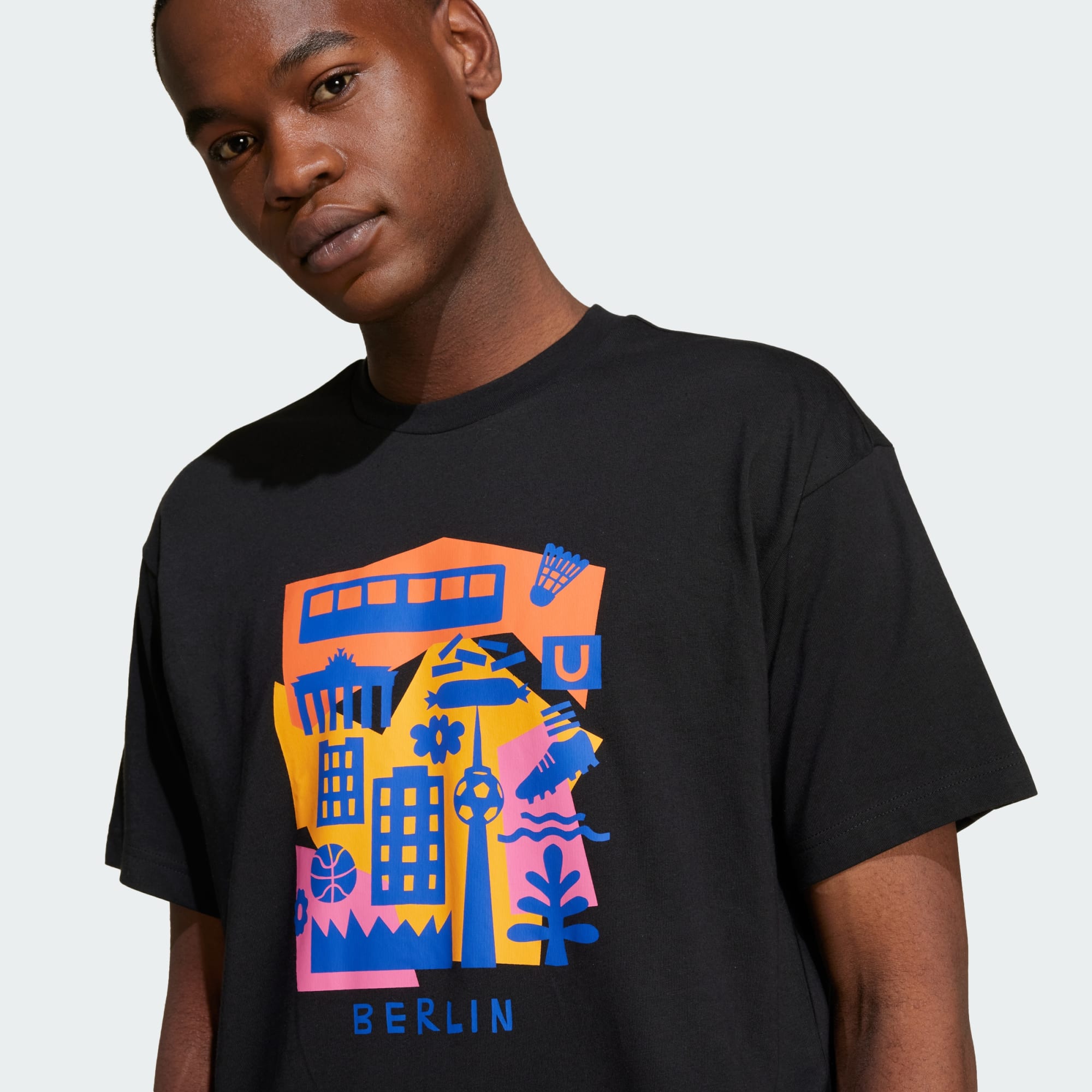 Champion Berlin in this adidas t-shirt. Even when you're far away, the vibrant graphics transport you to the city's bustling streets and thriving arts scene. Made from cotton jersey and cut for a loose fit, this tee is easy to style up or down, depending on your plans. This t-shirt was made using UNITEFIT — an all-gender fit system that was created with a spectrum of sizes, genders and forms in mind.