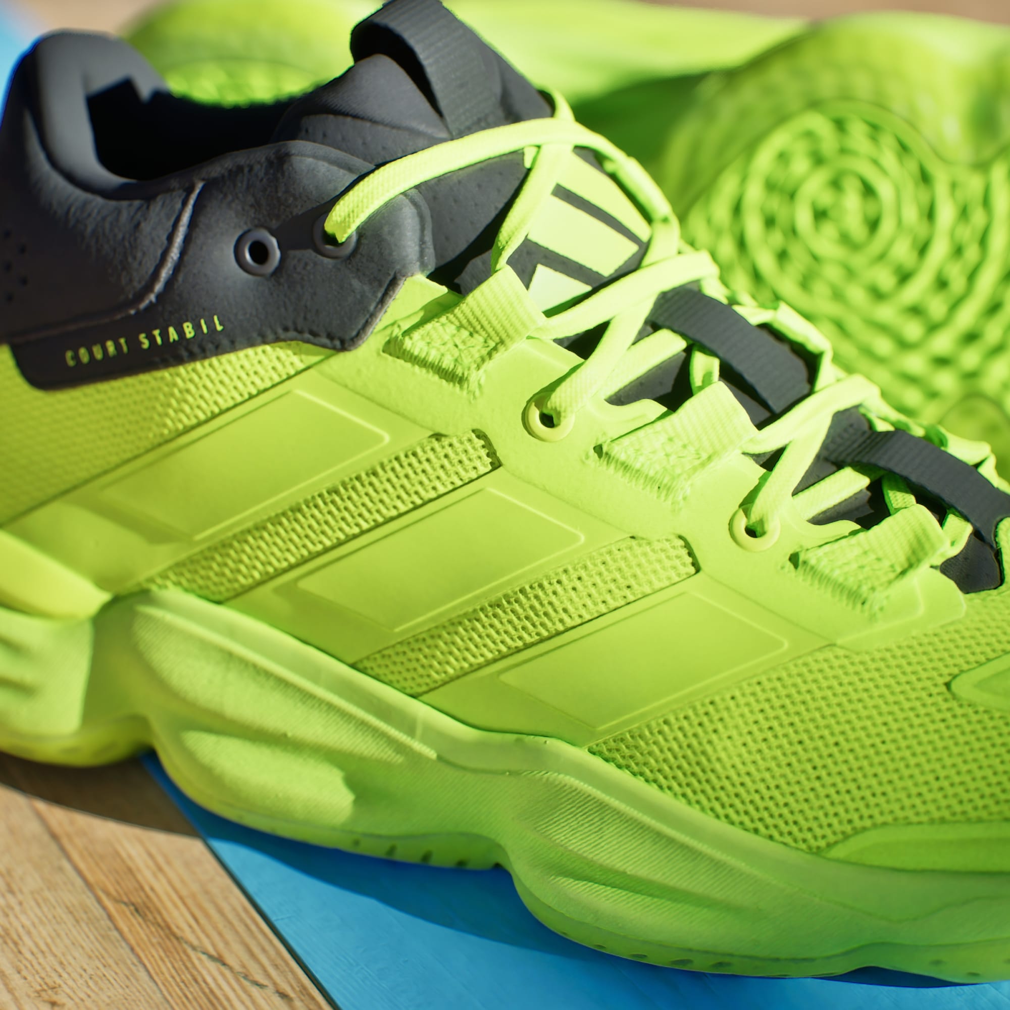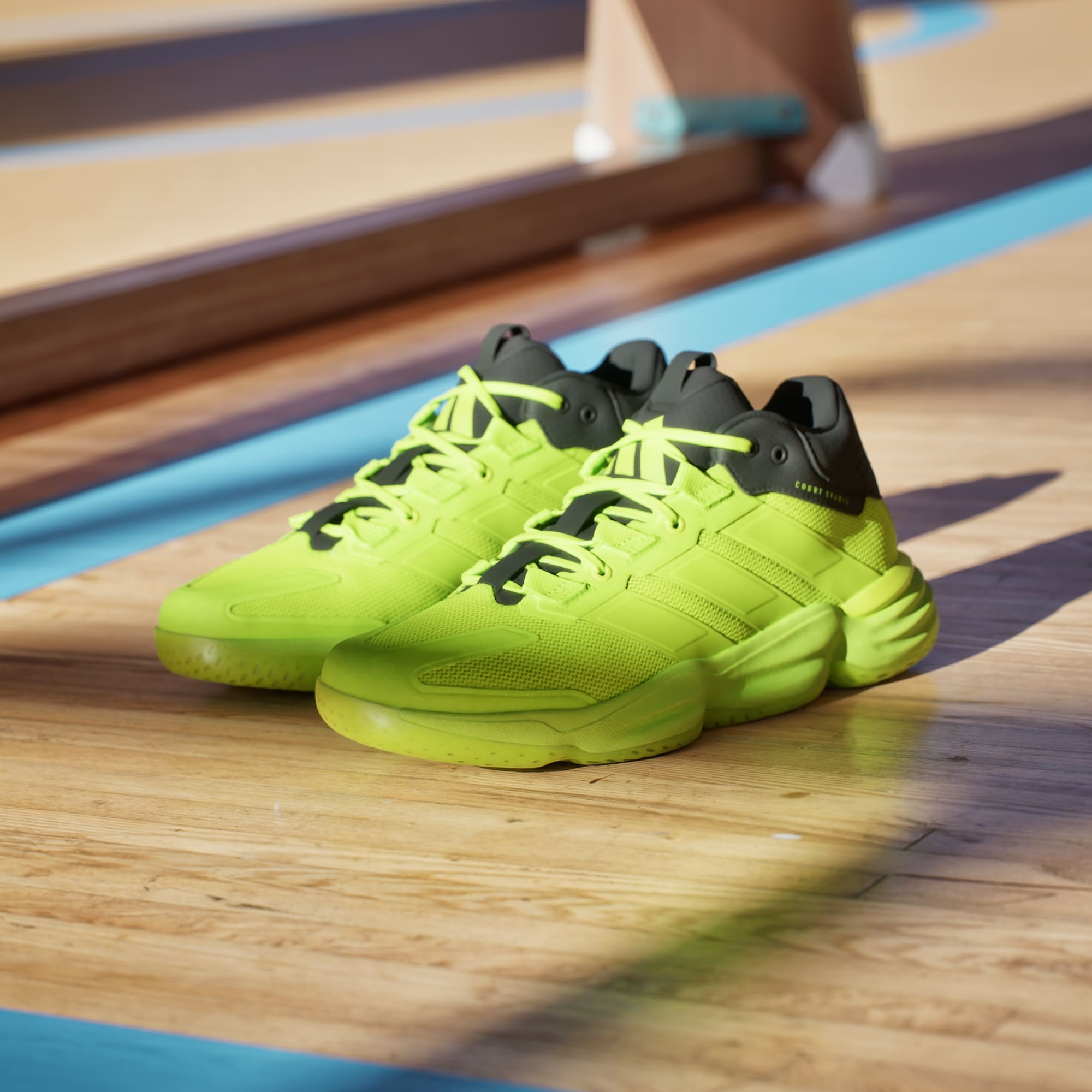Command the court. Rolling with basketball-inspired style, these shoes are part of the trusted adidas Stabil family of power-focused indoor footwear. Their mid-cut mesh upper offers support and ventilation, while a REPETITOR midsole adds stability and comfort to every stride. A durable rubber outsole provides game-changing grip as you take control.