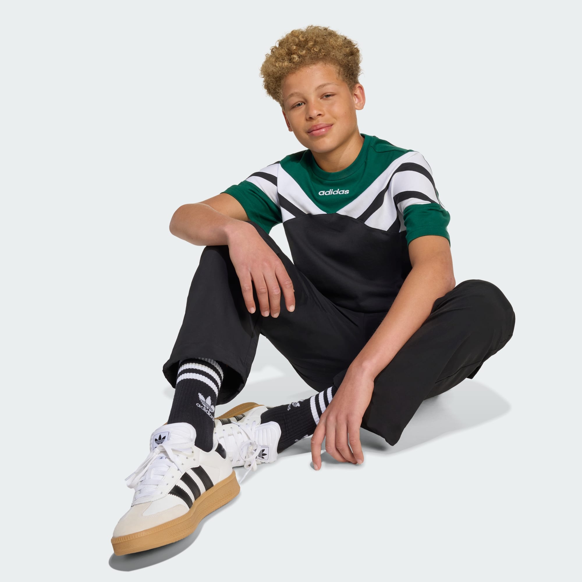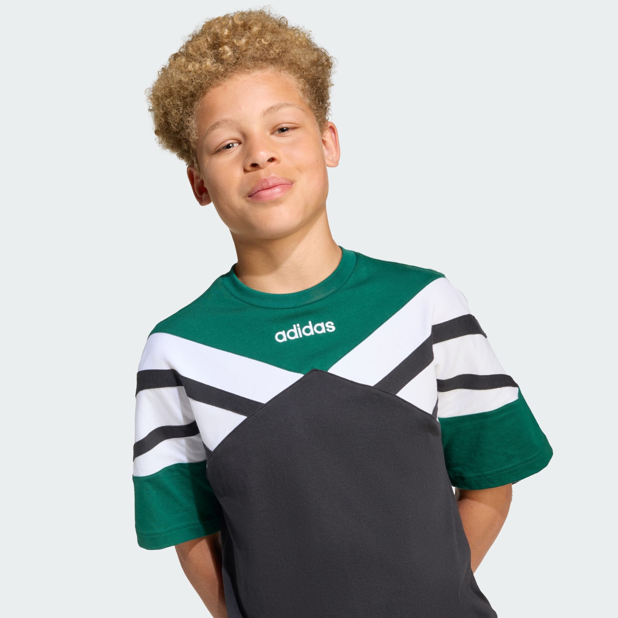 From the archives to the street, this juniors' adidas tee brings football energy to your everyday look. Its loose shape and soft fabric keep you comfortable whether you're hanging out or on the move. An allover monogram print and badge-inspired graphics nod to the beautiful game's most iconic kits.