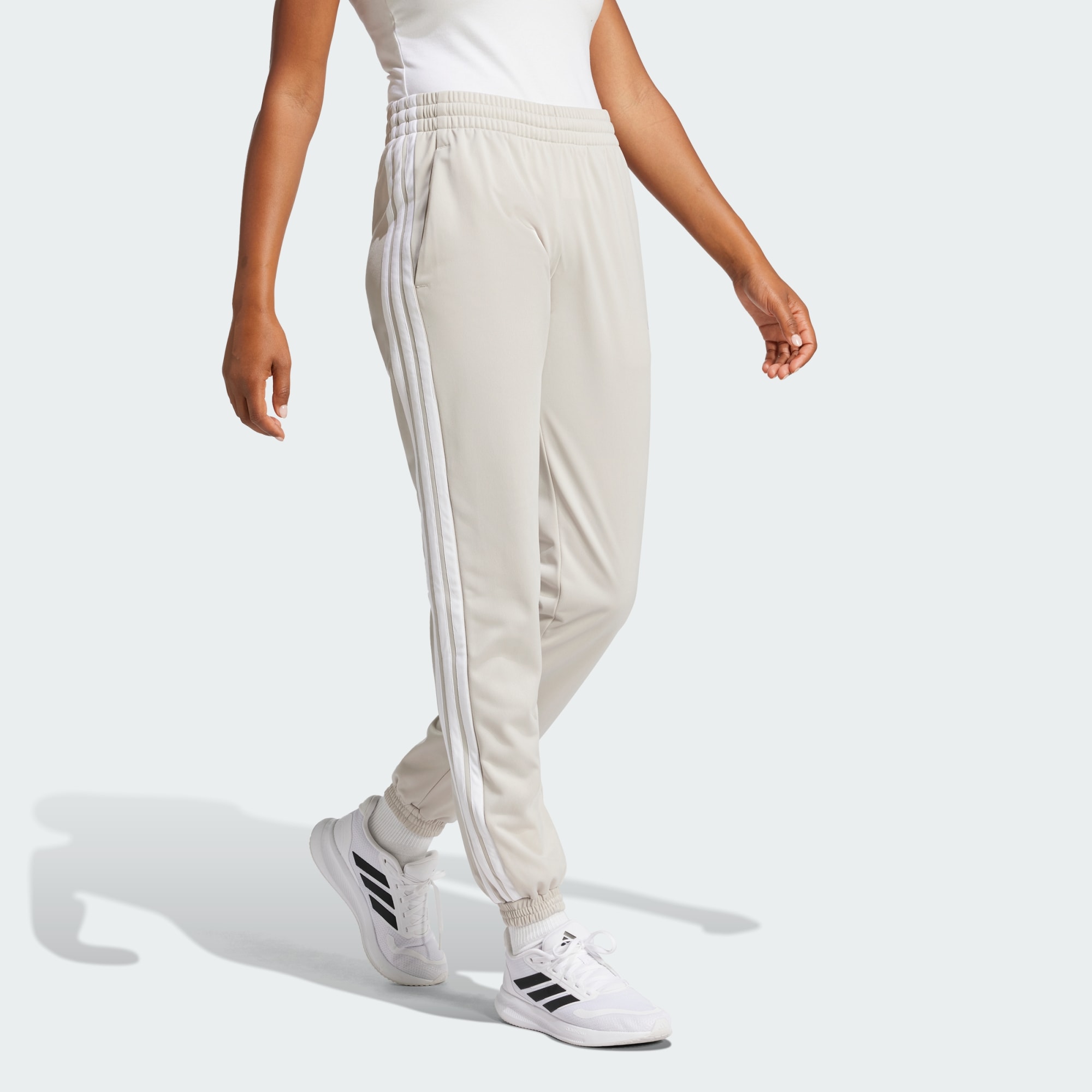 These adidas Dayready Trackpants are made for comfort, whether you're lounging at home or running errands around town. Classic tricot fabric has a soft sheen. The 3-Stripes down the legs are an iconic adidas detail that has stood the test of time. This product is made with 100% recycled materials. By reusing materials that have already been created, we help to reduce waste and our reliance on finite resources and reduce the footprint of the products we make.