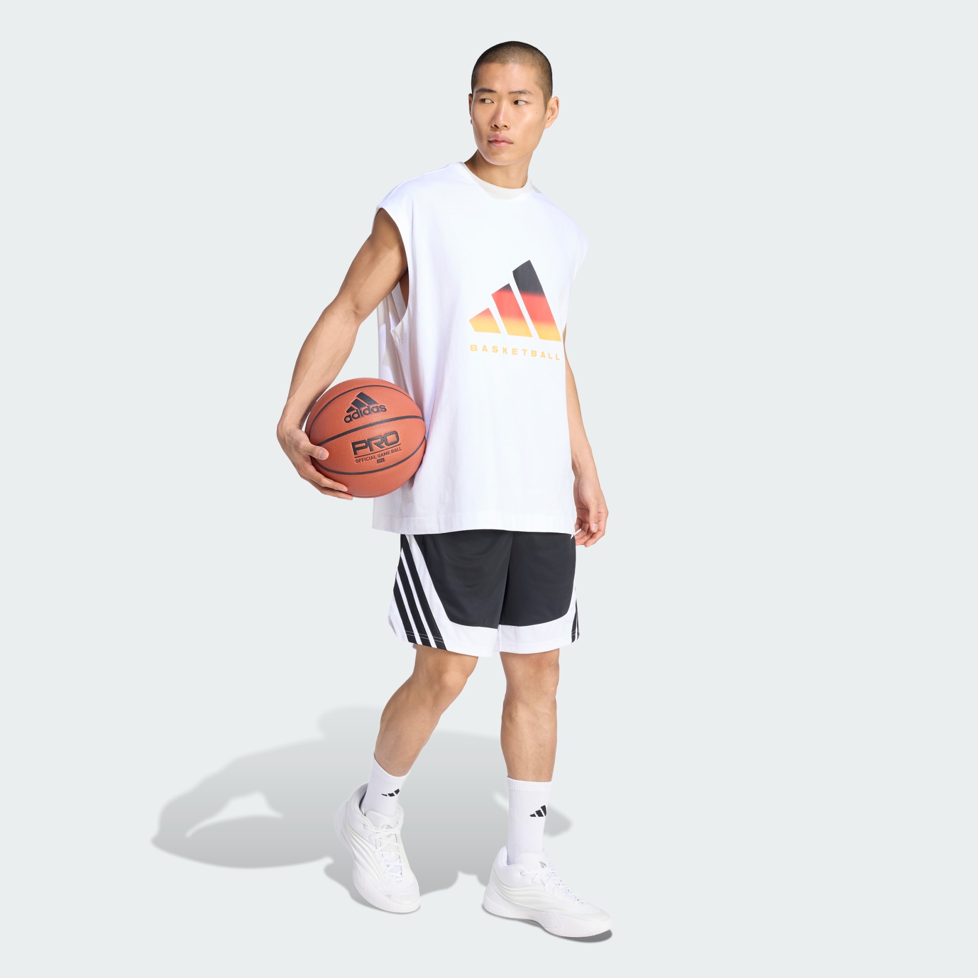 Style and comfort go hand in hand in the DBB Basketball Graphics Sleeveless Tee 2. Whether you’re shooting baskets at training, or scoring points for your street cred off court, this t-shirt is designed to keep you looking and feeling good. The loose fit is bang on trend, as are the statement graphics. Iconic adidas branding adds the finishing touch, alongside design accents from Germany’s basketball elite. Turning heads on and off the court, this t-shirt pairs equally well with sportswear and casual outfits. Crafted from soft cotton, this everyday staple serves up comfort with a side of flair. Make it your go-to choice for on-court and off-court adventures – and turn your passion for the game into an effortless style statement.