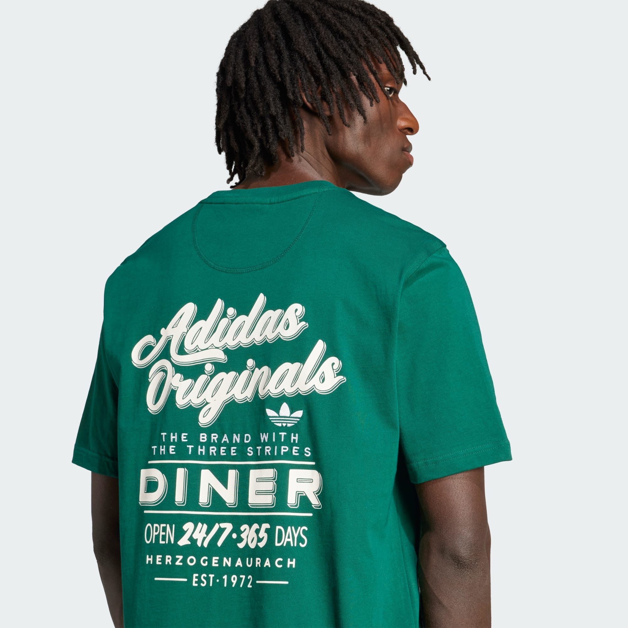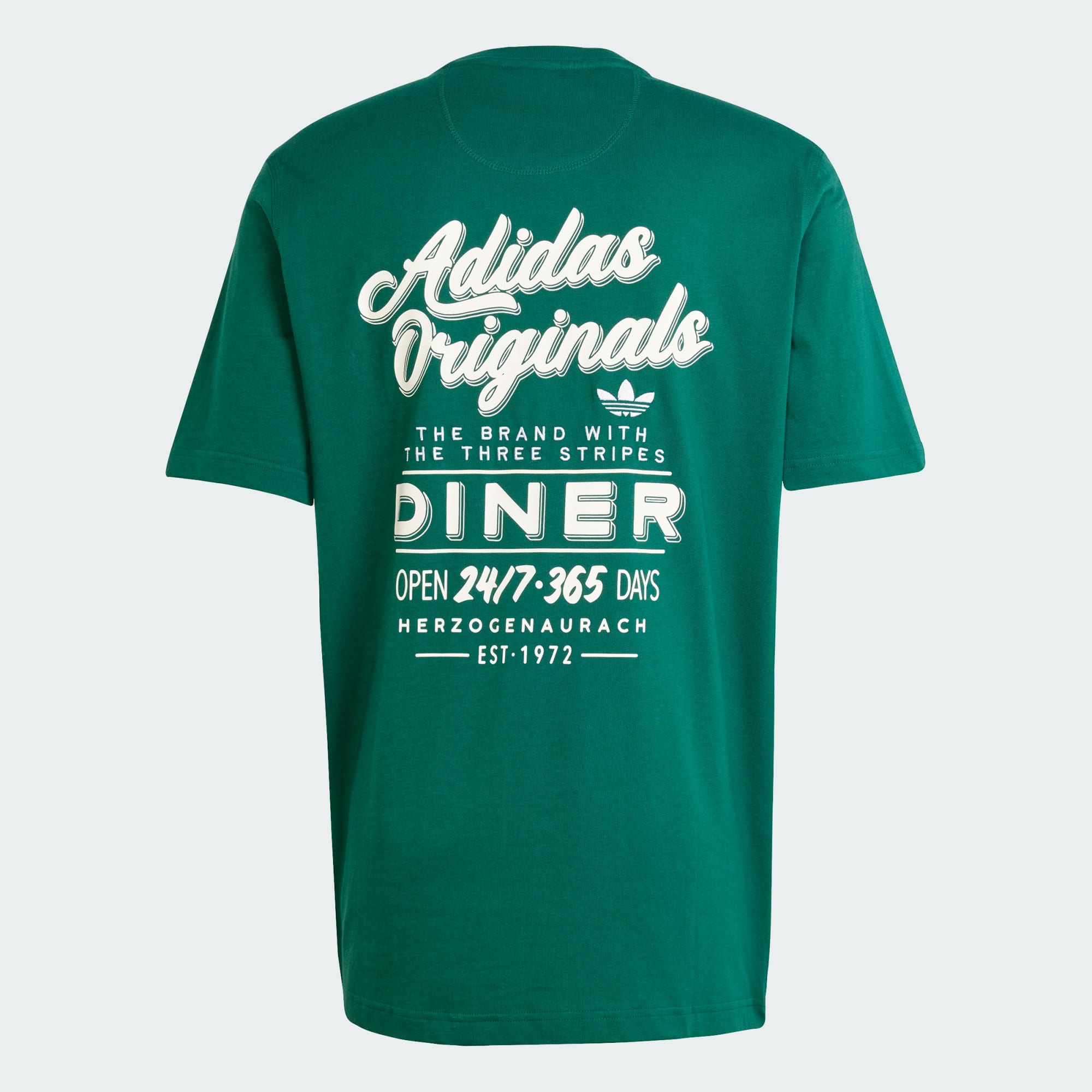 This adidas tee has a loose, easygoing shape that's perfect for kicking back or meeting up. The soft single jersey fabric keeps you comfortable all day. A vintage-inspired graphic on the back pays tribute to the local diners that have been serving up good times for decades.