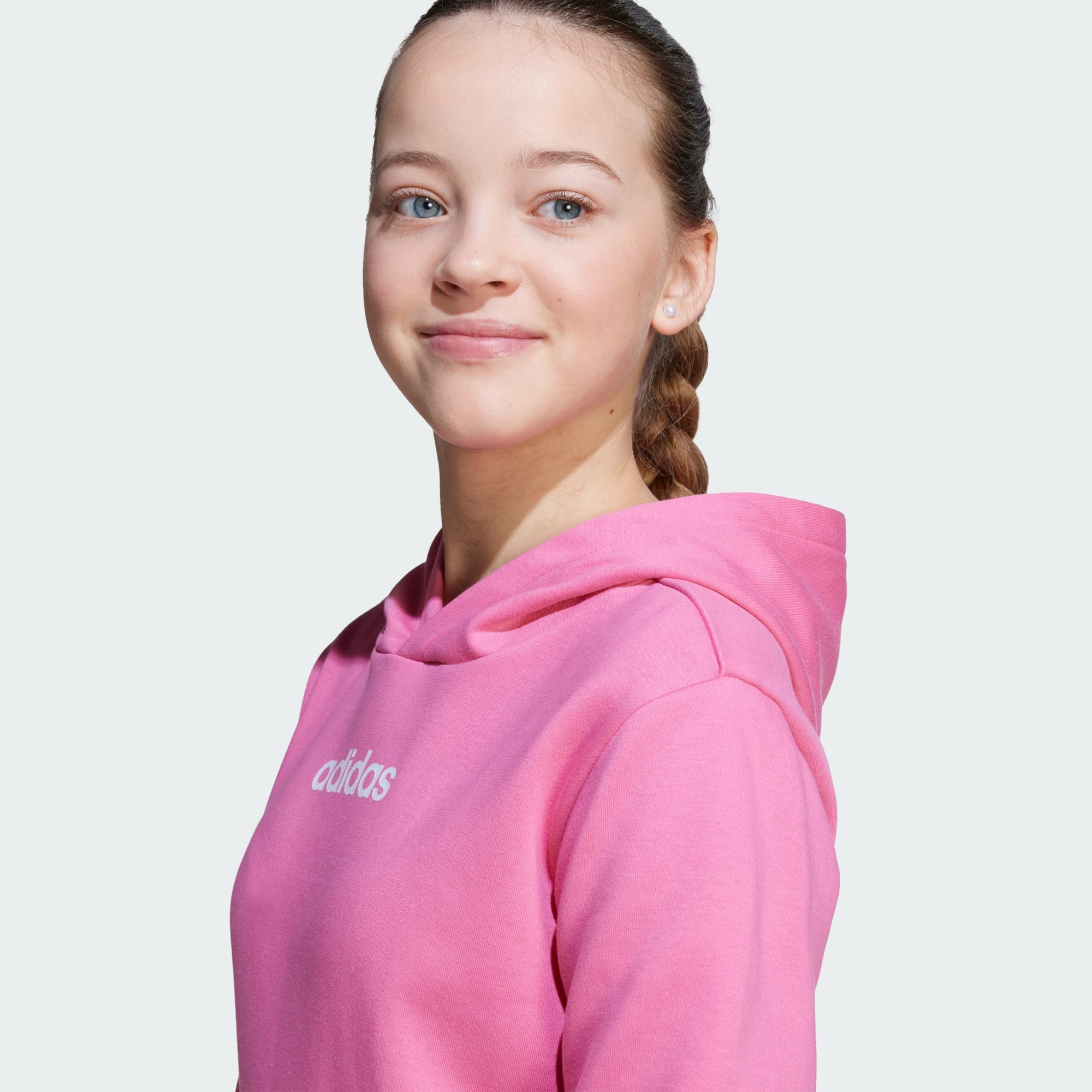 A day on the move calls for a layer that can keep up. This juniors' adidas hoodie is made of soft fleece and has a versatile fit that layers easily over your favourite tees. The bold adidas graphic across the chest leaves no question about your love for the 3-Stripes life.
