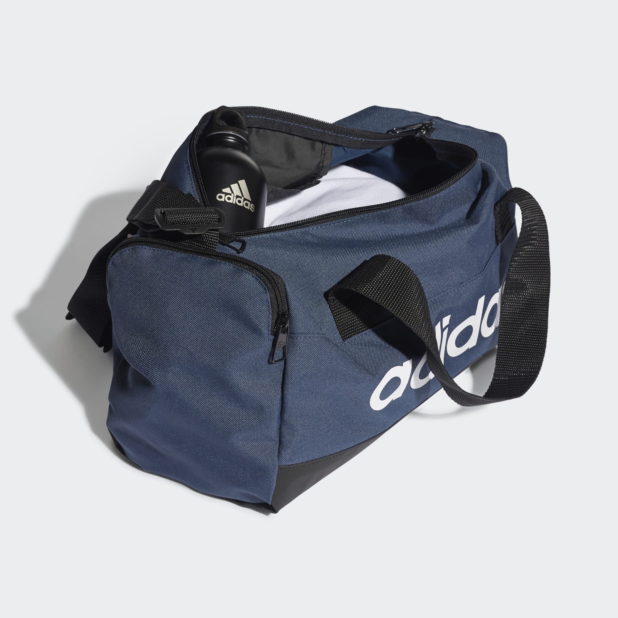 Ready anytime. Stash your gym essentials in the main compartment of this adidas duffel bag and your keys and wallet in the zip pocket, and you're out the door in no time flat. The coated material is dirt- and stain-resistant to keep it looking clean. This product is made with Primegreen, a series of high-performance recycled materials.