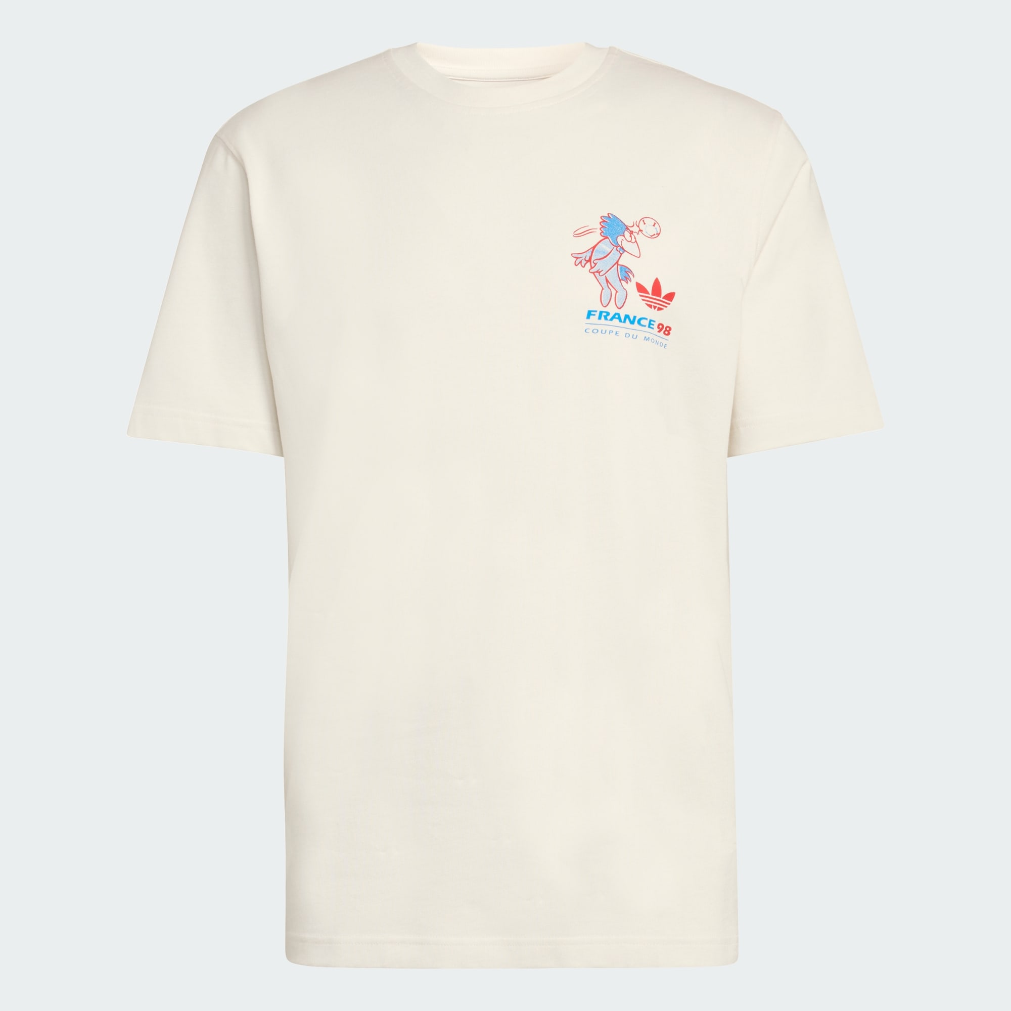 The FIFA World Cup 26™ Footix Mascot T-Shirt is a celebration of football heritage, featuring vibrant historic mascots that bring the spirit of the game to life. Crafted from single jersey fabric, the t-shirt offers softness and ease, making it a great choice for everyday wear. The Trefoil branding adds an iconic adidas touch, while the regular fit helps you stay comfortable whether you're cheering from the stands or enjoying a casual day out with friends. Join us in celebrating the beautiful game with this unique piece, and showcase your passion in style.