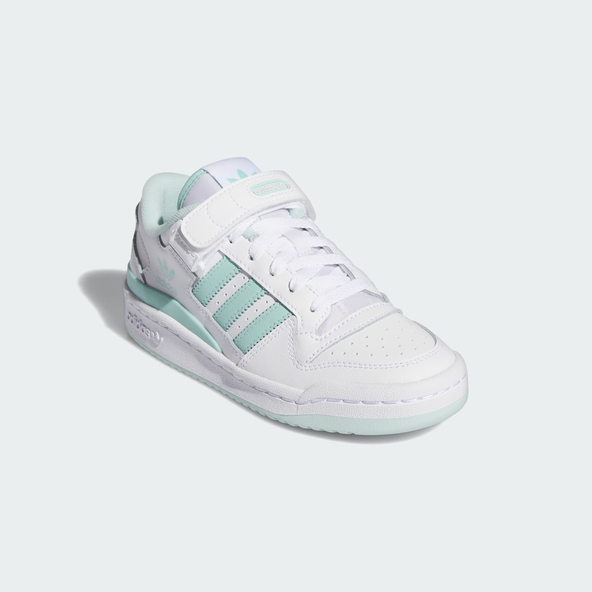The '80s were a high point of basketball style, and the adidas Forum quickly became legend, first on the hardwood and then on the streets. These juniors' shoes come fully equipped with a leather upper, chunky outsole and ankle strap. Tap into the decade's energy every time you lace them up.