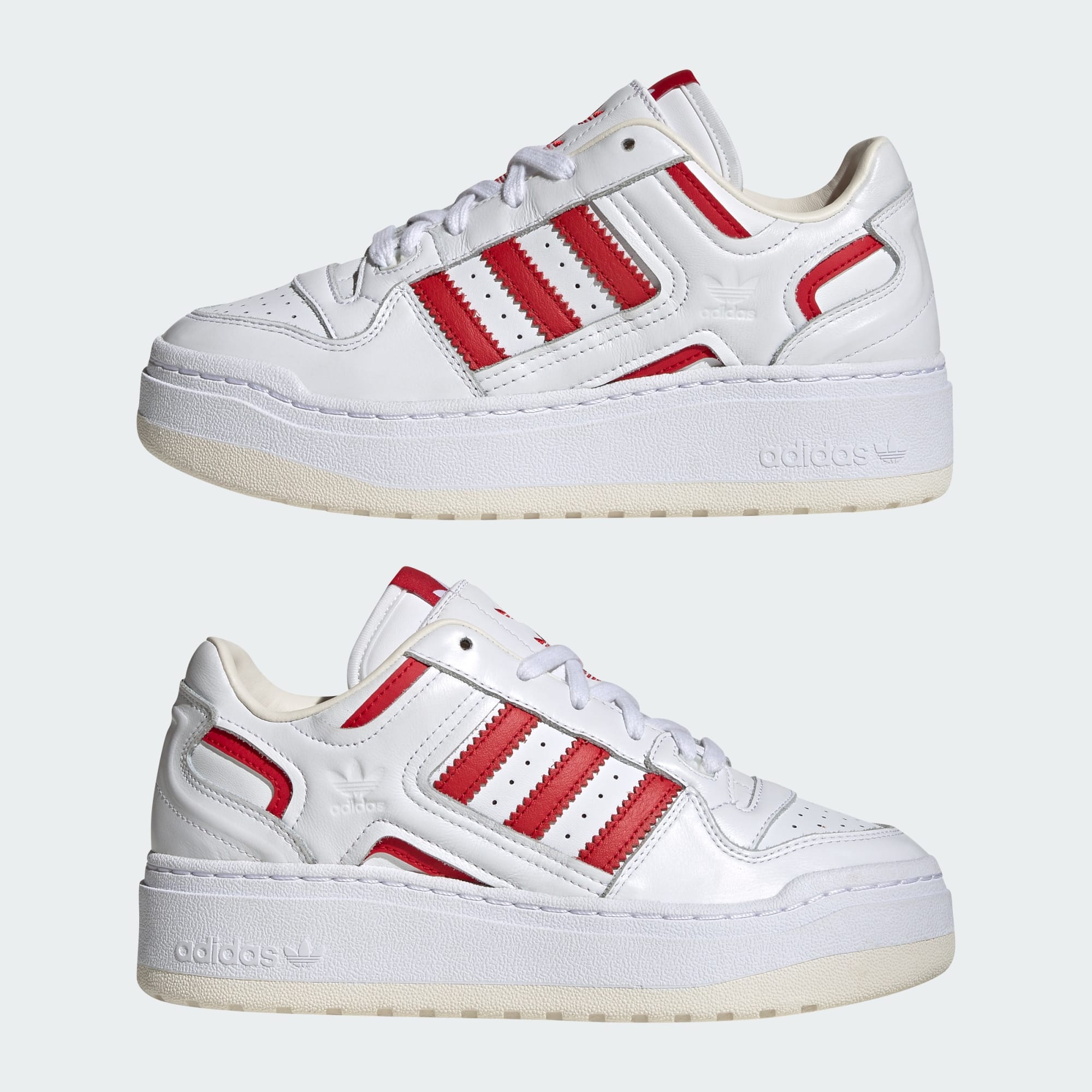 Looking to stand out from the crowd? These adidas Forum XLG shoes are designed to do just that. With the dynamic combo of a smooth leather upper and stepped-up rubber outsole, these shoes can take you from a skate park to an art gallery in style. New textures and detailing in the tonal X-overlay and double-layered tongue push the Forum into a bold new territory. Lace these up and prepare to be the envy of everyone you see.