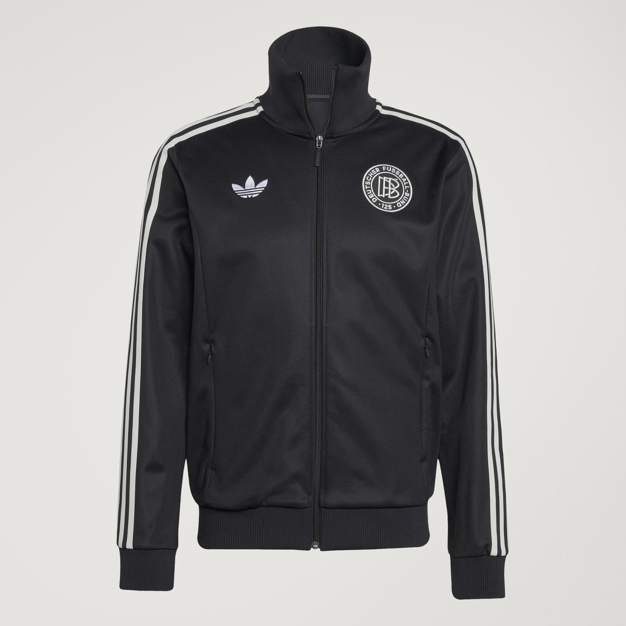 Mark 125 years of the Germany national team, and its long association with the 3-Stripes. Inspired by the side's special anniversary match kit, this adidas track top will keep you comfortable with soft piqué and a high ribbed collar. Sitting proudly on the chest, a specially created badge leaves no doubts about who you back on the football pitch.