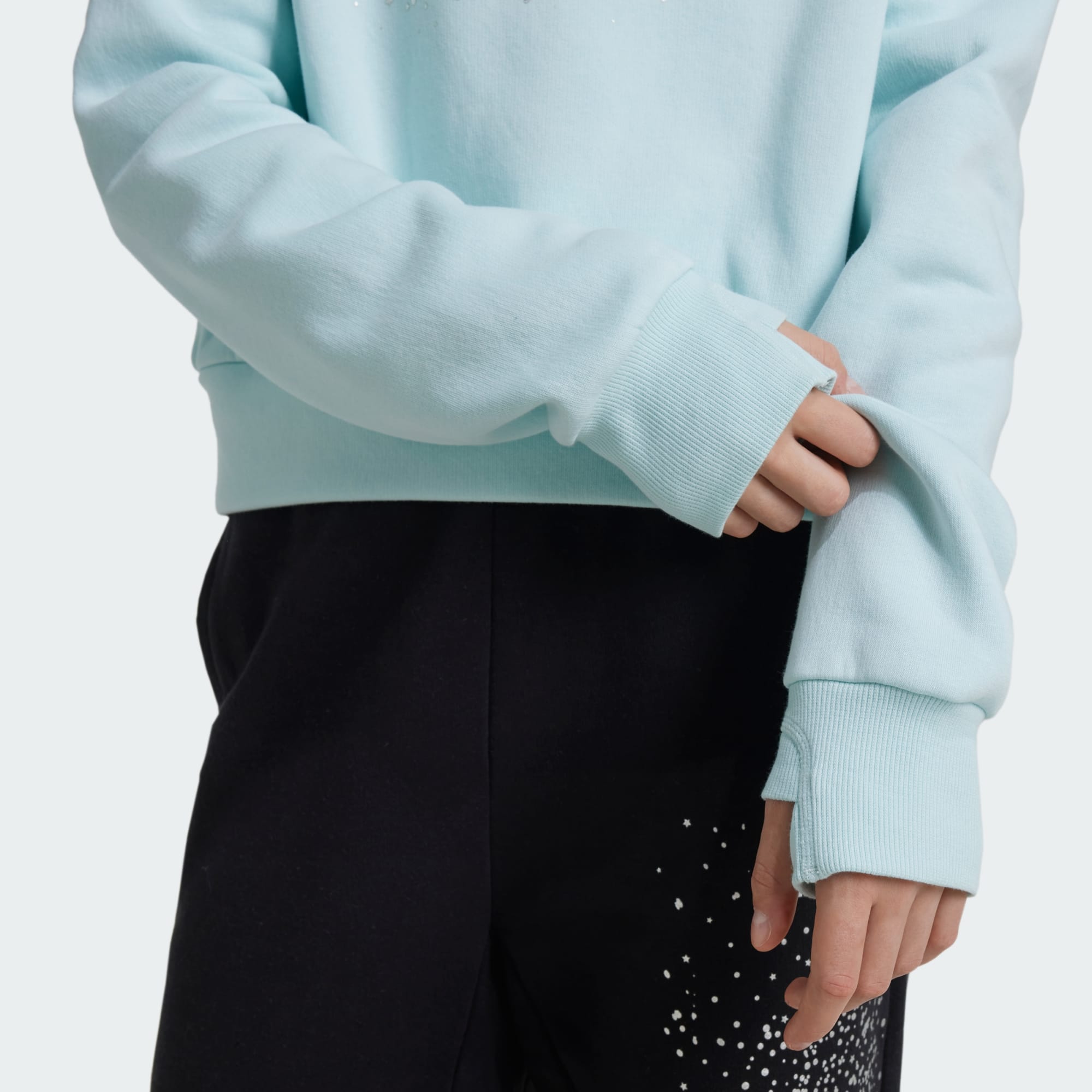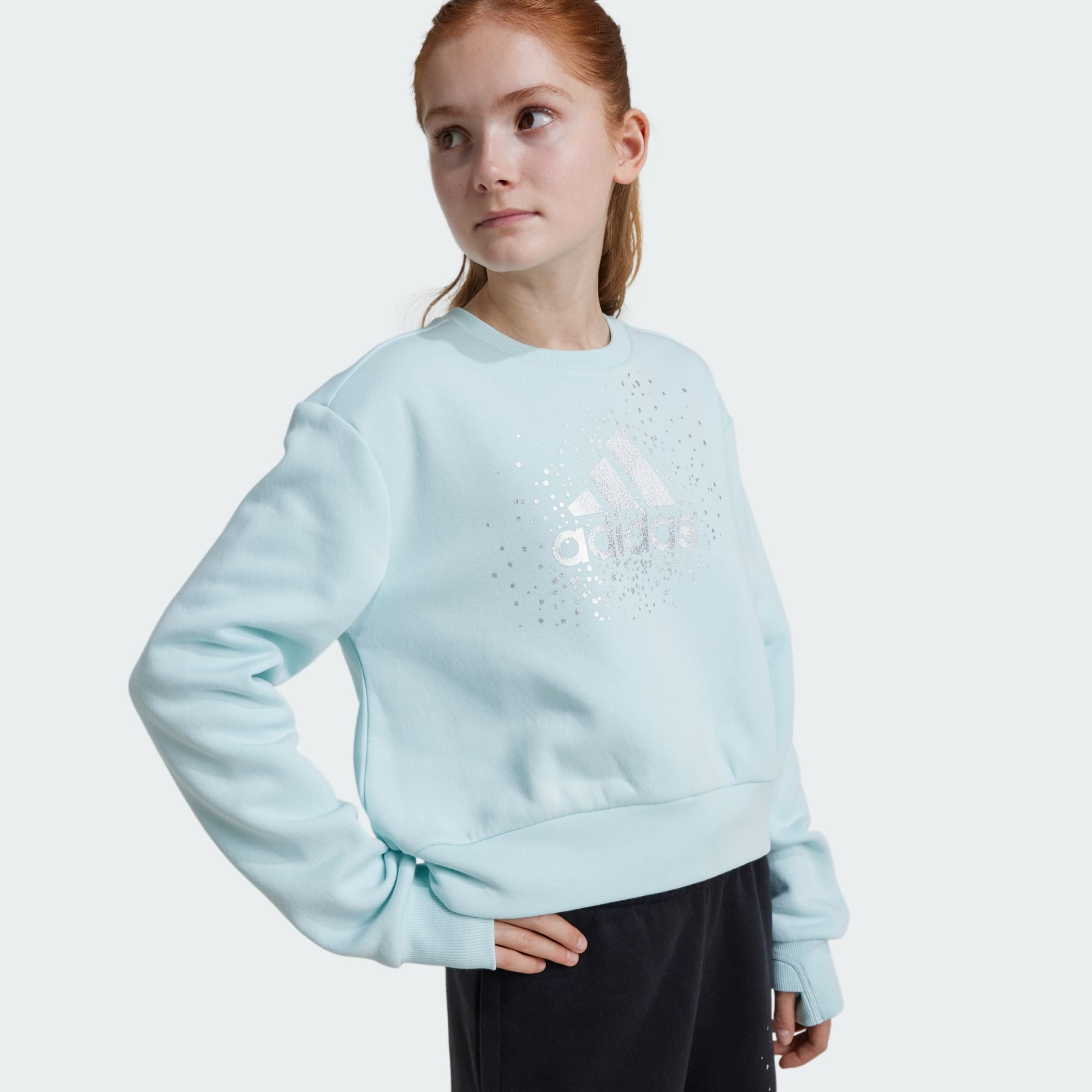 Inspired by the grace and excitement of ice skating, this adidas sweatshirt for juniors captures the pristine elegance of life on the rink. The loose silhouette and drop shoulders exude laid-back charm while the fleecy soft material keeps the chill at bay. Ribbed cuffs with thumbholes offer extra coverage for your hands, and an iridescent logo on the front echoes the shimmer of icy reflections. By choosing recycled, we are able to reuse materials that have already been created, which helps to reduce waste. Renewable materials choices will help us to remove our reliance on finite resources. Our products made with a blend of recycled and renewable materials feature at least 70% total of these materials.