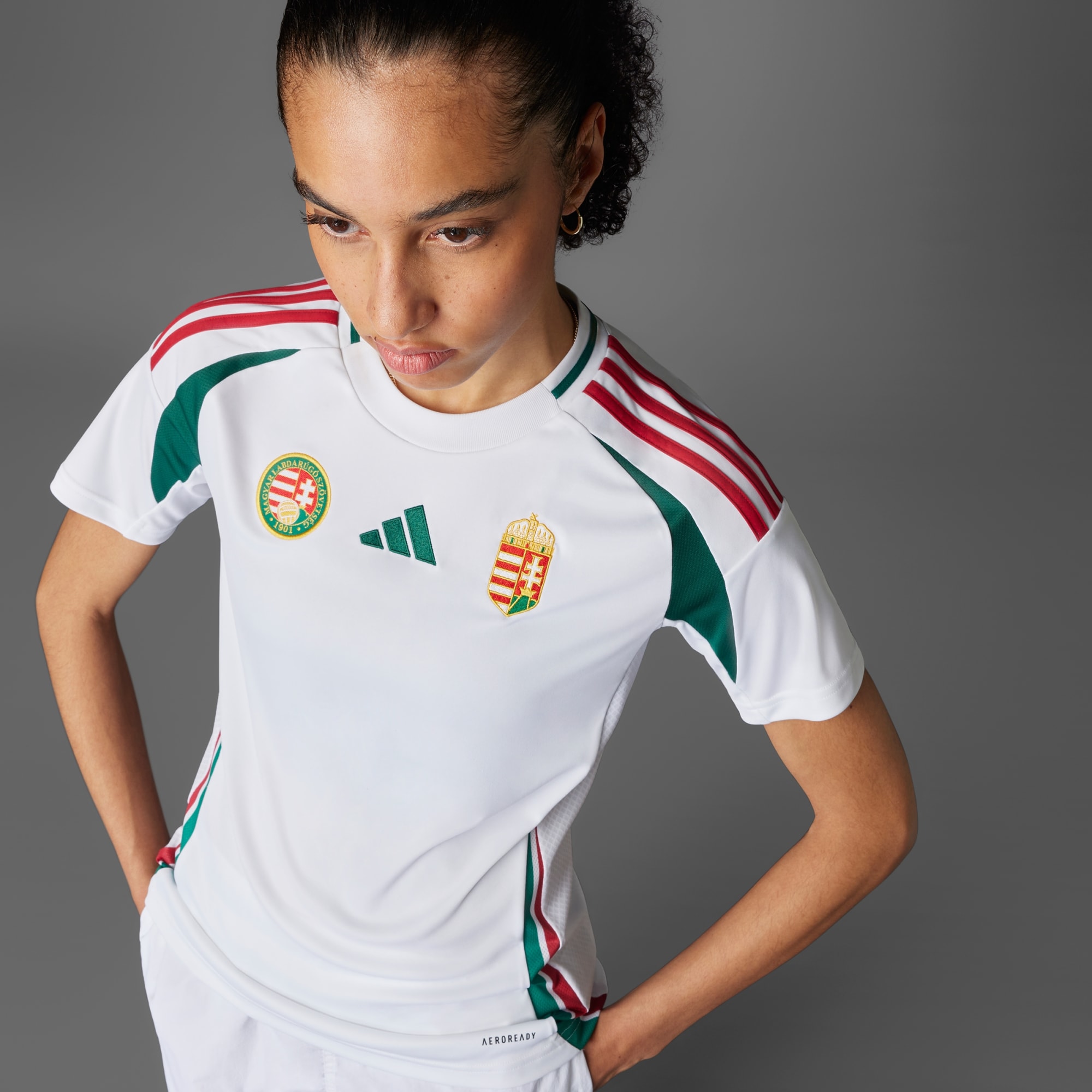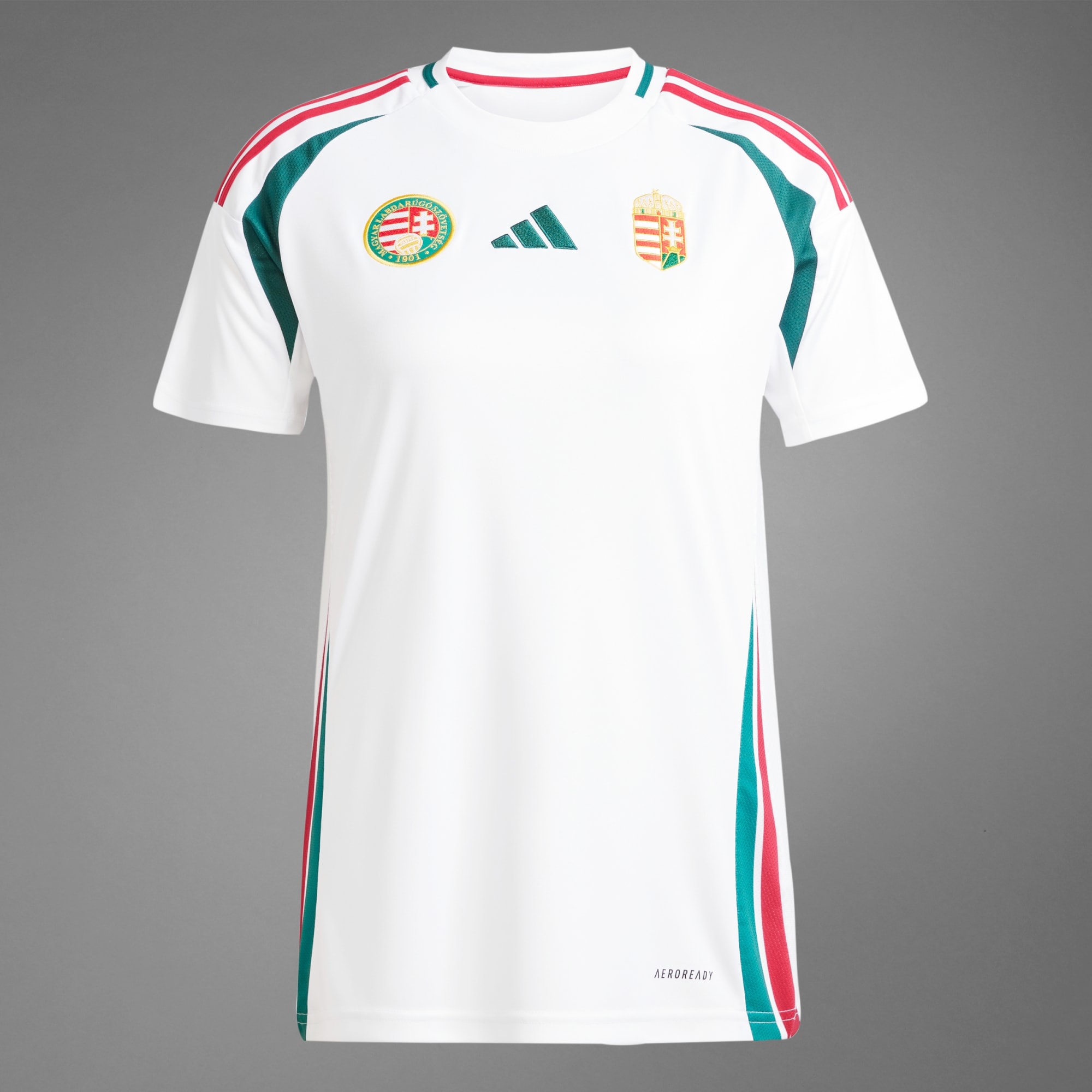 Hungarians around the world are united by their football fandom. Part of an away kit clad in the nation's flag colours, this adidas Hungary jersey is built to keep fans and players comfortable. Moisture-managing AEROREADY ensures you stay dry through every challenge on and off the pitch. Woven crests and a "Magyarország" sign-off show you stand with your fellow fans. This product is made with 100% recycled materials. By reusing materials that have already been created, we help to reduce waste and our reliance on finite resources and reduce the footprint of the products we make.