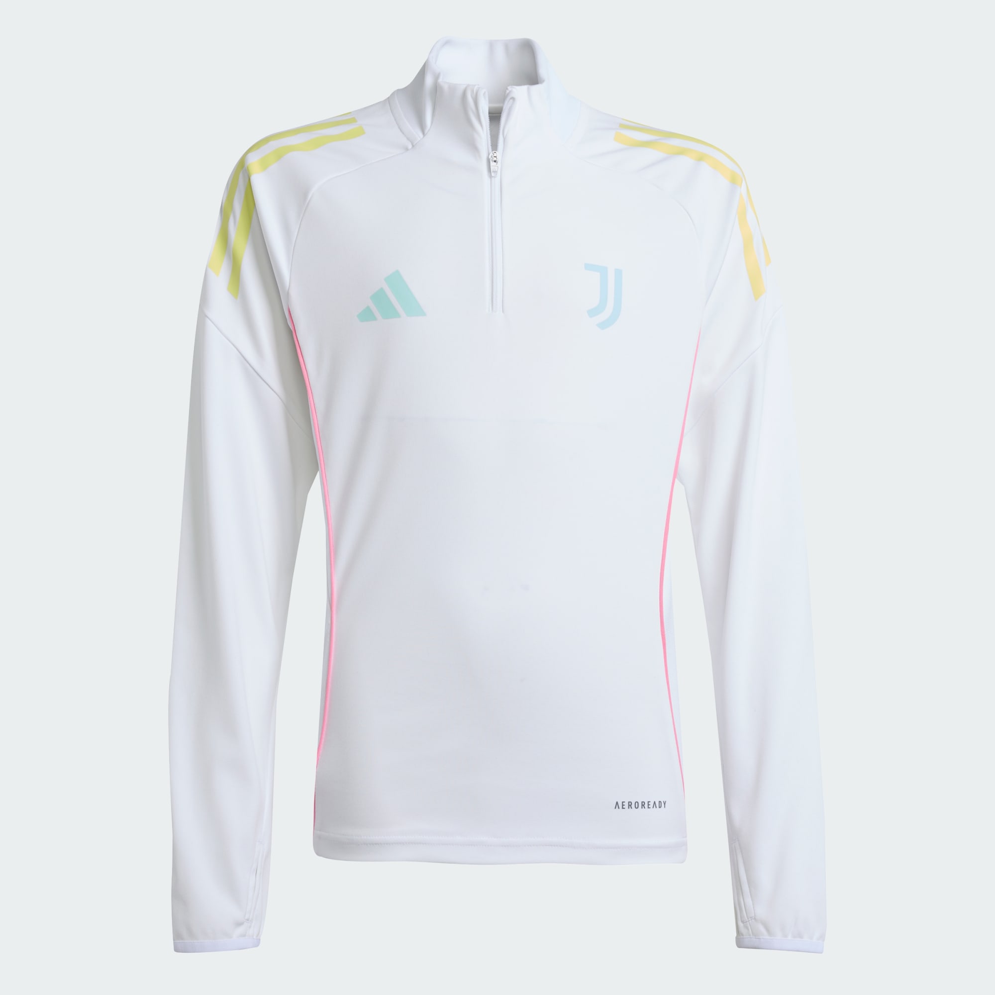 Training pitch too cold for your sizzling football skills? Pull this juniors' adidas Juventus training top over your jersey. The sleek pullover the club's players wear when they're preparing for league games, it employs AEROREADY to ensure moisture never becomes a problem. And if you do get too hot, the quarter zip means it's a breeze to get off.