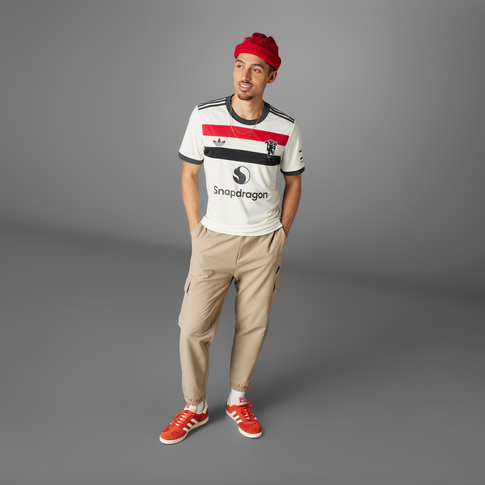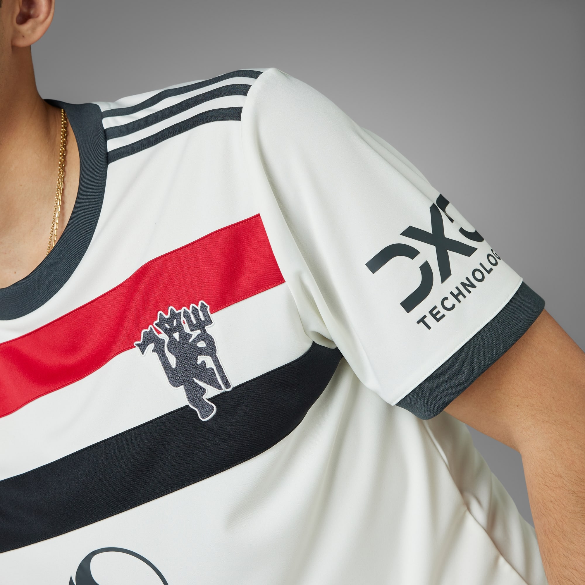 Football pride never falls out of fashion. This Manchester United third jersey salutes the flags that follow the club home and away, while also adding some classic adidas heritage. Shorthand for sporty style, a Trefoil and red devil badge stand out from that tricolour chest bar. Moisture-managing AEROREADY keeps fans comfortable.This product is made with 100% recycled materials. By reusing materials that have already been created, we help to reduce waste and our reliance on finite resources and reduce the footprint of the products we make.