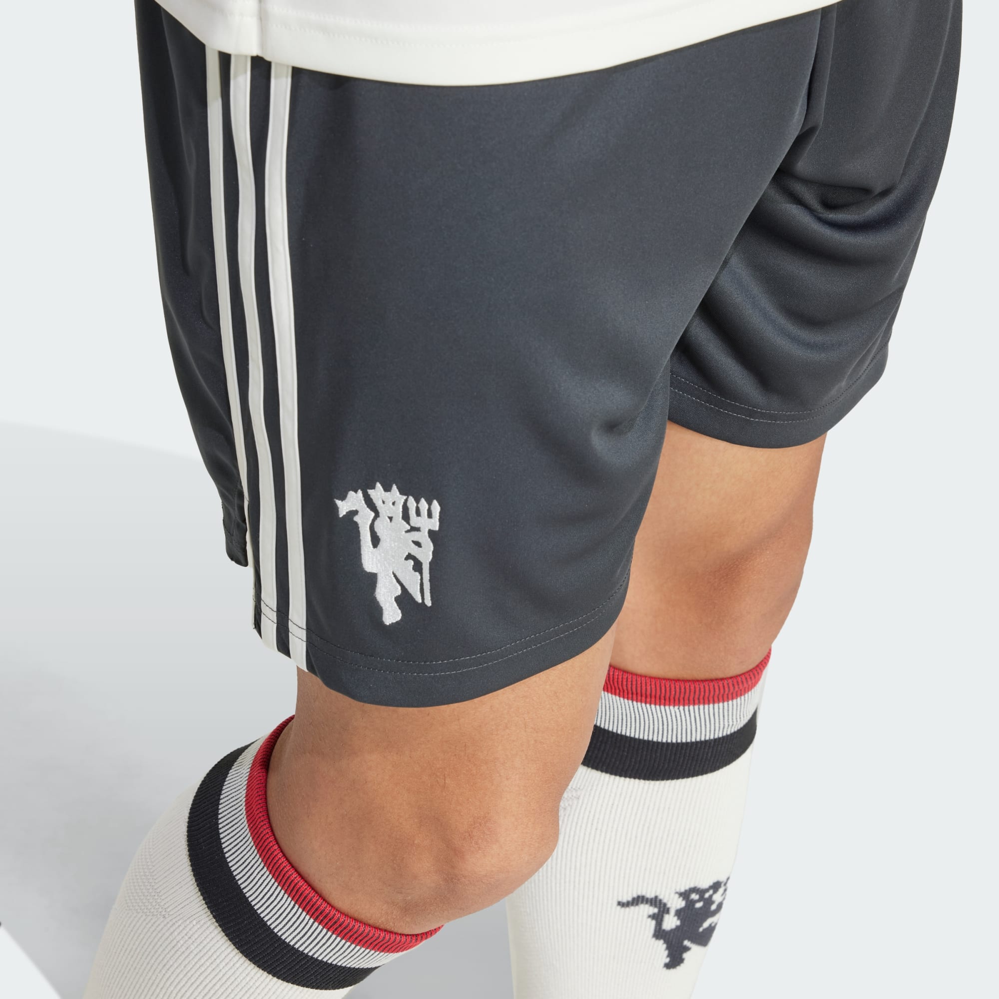 Man Utd shorts with classic 3-Stripes style, made with recycled materials.