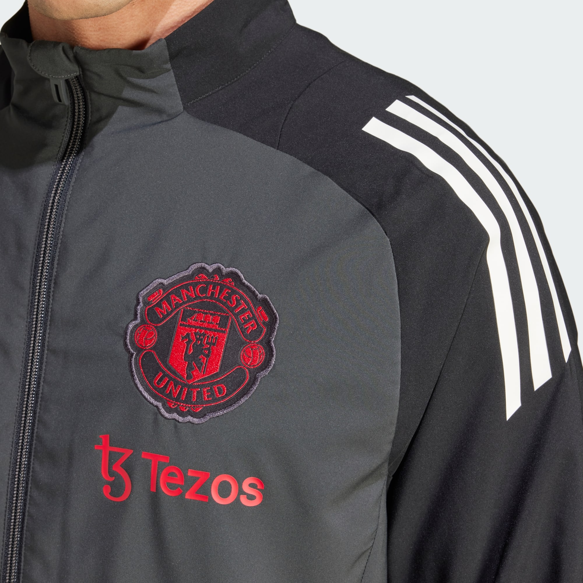 A Man Utd jacket for off the field, made in part with recycled materials.