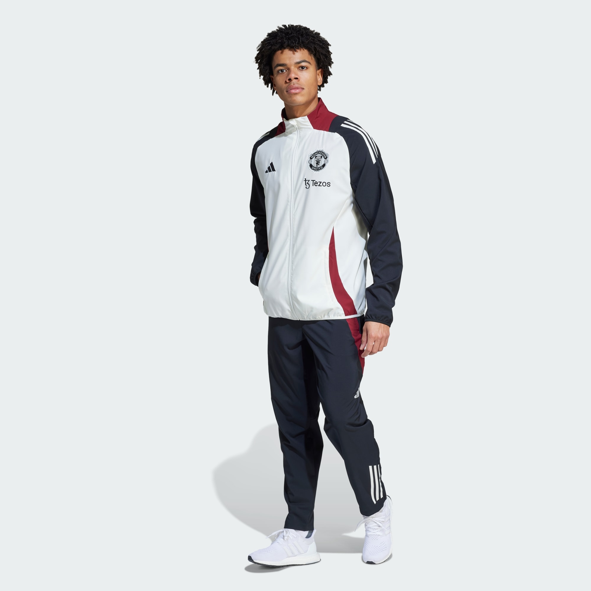 Carry Manchester United team spirit with you wherever you go. The adidas jacket players zip up when they're carrying out off-field duties, it will keep you comfortable with mesh-lined woven fabric and a streamlined fit. Zip pockets make this football top as functional as it is stylish, but that embroidered team badge on the chest is the real star. This product is made with 100% recycled materials. By reusing materials that have already been created, we help to reduce waste and our reliance on finite resources and reduce the footprint of the products we make.