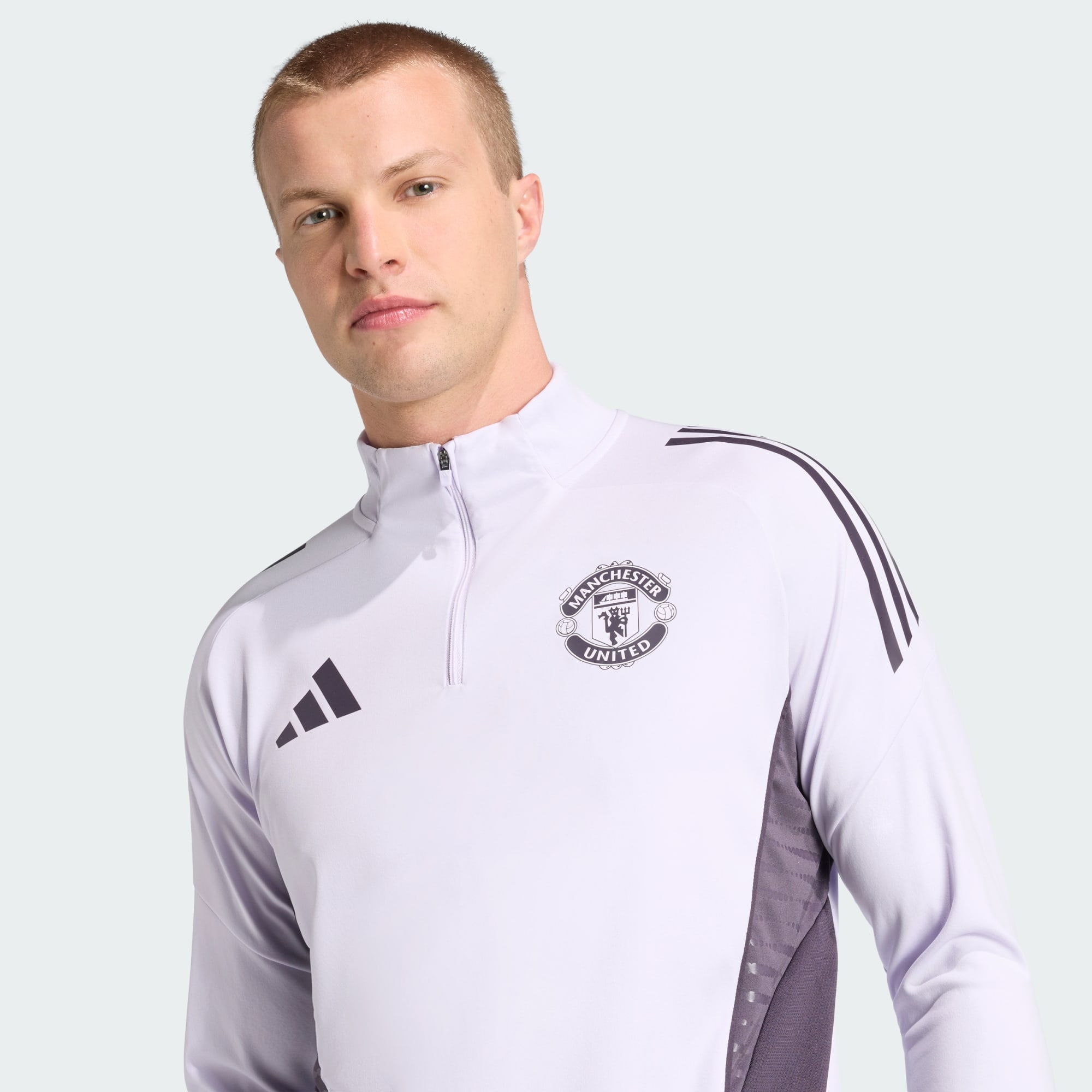 Sporting colours inspired by Manchester United's away shirt, this adidas football training top is part of the kit the squad wear when preparing for league games. Cuff thumbholes let you pull those long sleeves over your hands while the quarter zip allows you to further fine-tune your coverage. And there's no need to worry about moisture — AEROREADY will make it a thing of the past.