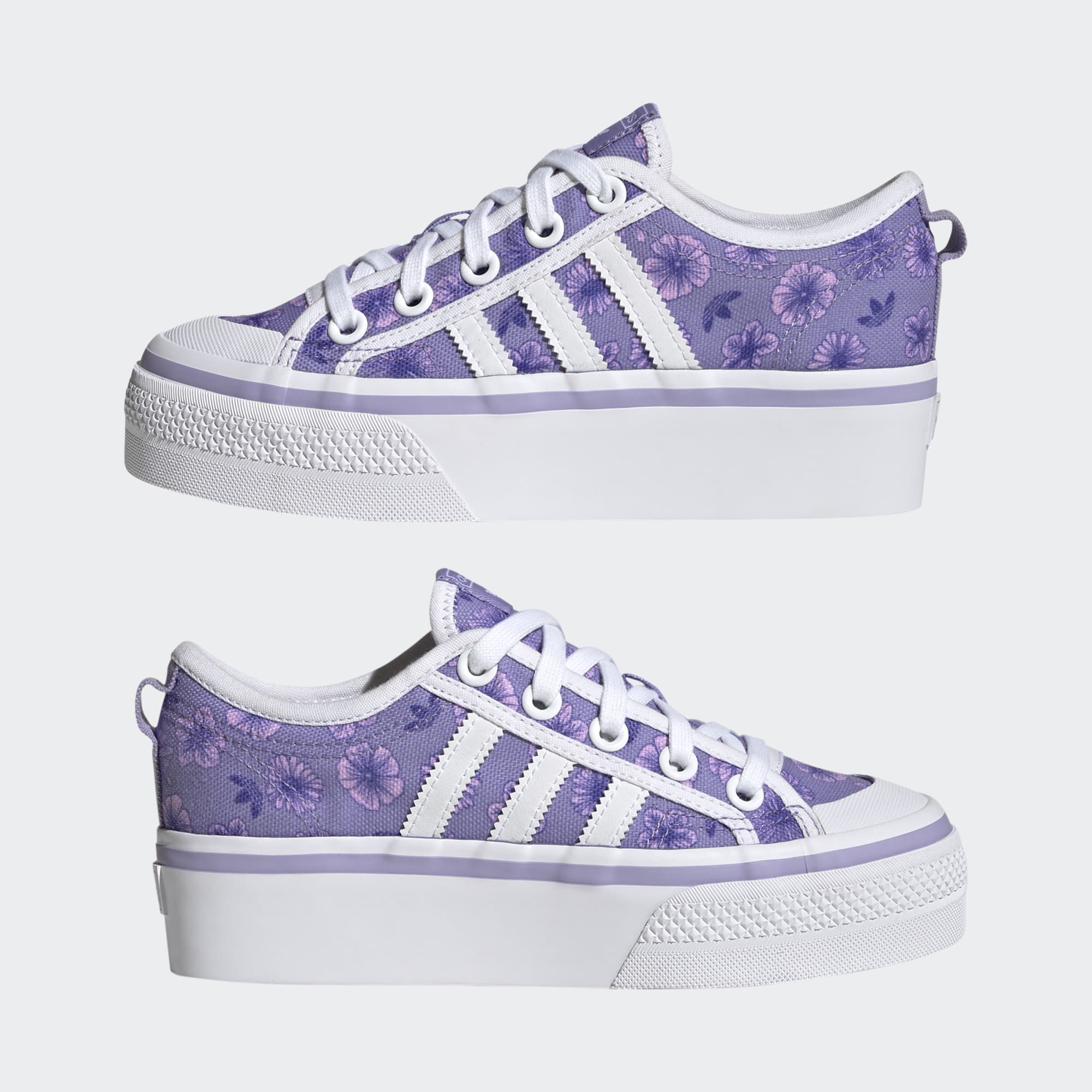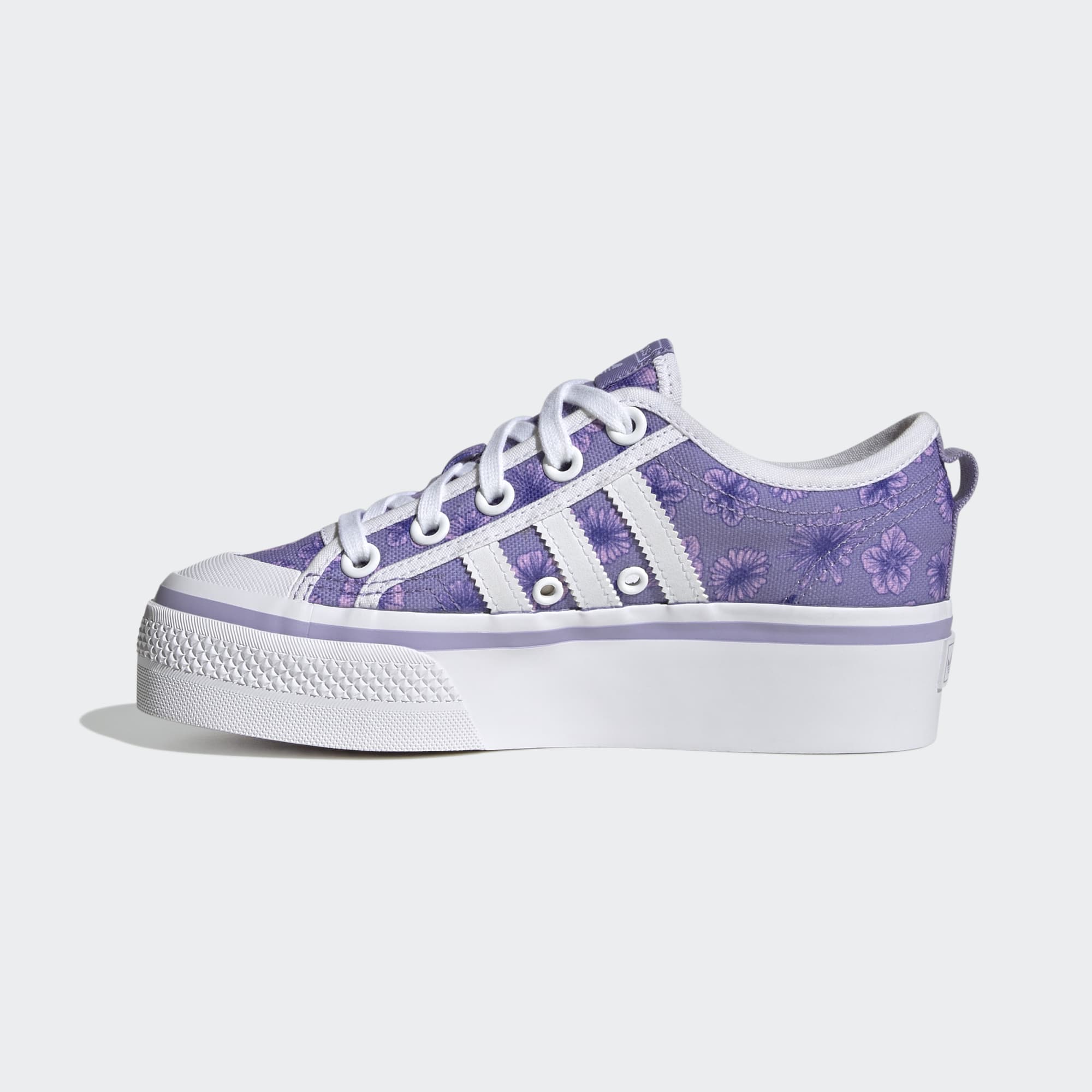 Let your confidence blossom in these juniors' adidas Nizza Platform Shoes. Building on the traditional vulcanised design, this pair features a fun platform outsole that helps you stand out from the crowd. Fresh flowers bloom across the comfortable upper for a playful energy that carries you through the day. Style them with your favourite leggings or denim shorts and you'll be rocking the ultimate head-to-toe vibe. Made with a series of recycled materials, this upper features at least 50% recycled content. This product represents just one of our solutions to help end plastic waste.