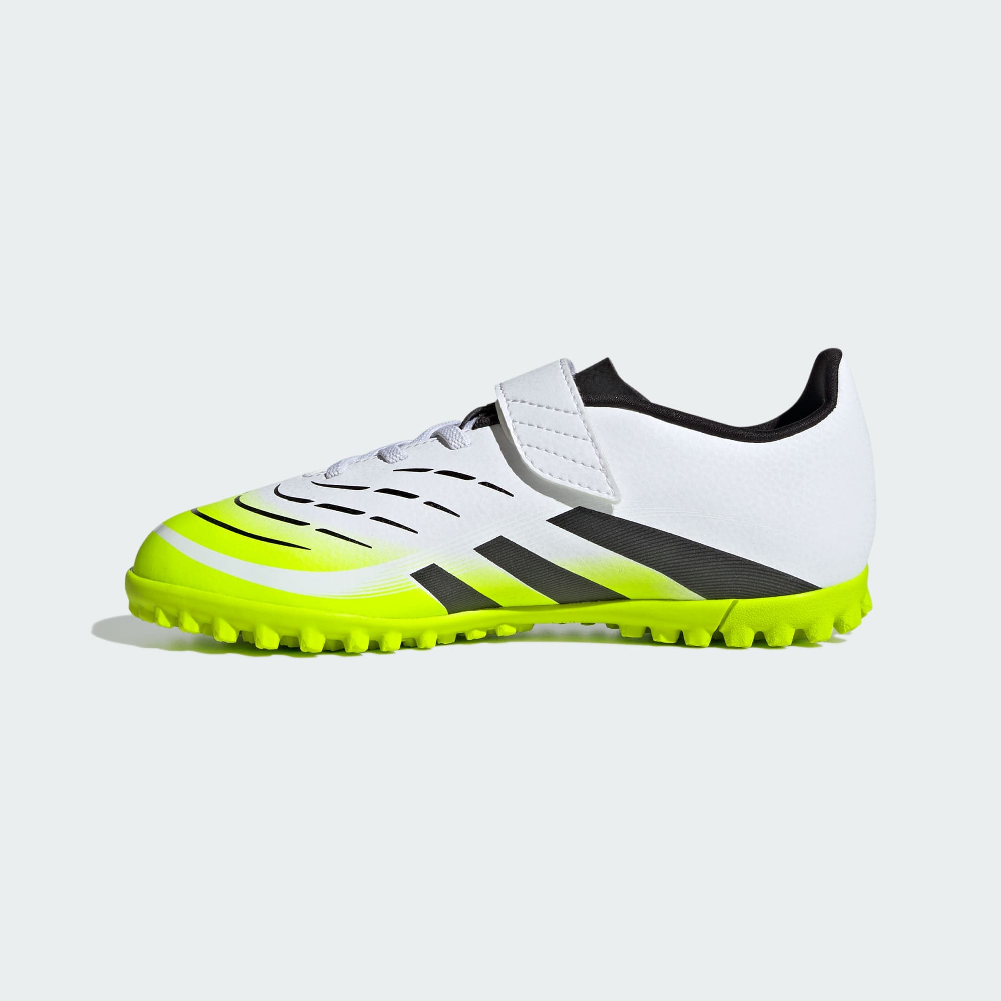 Discover the difference between aiming to score and knowing you will with adidas Predator boots that are crafted for goals. These juniors' Club football boots have a synthetic upper that's lined with soft textile and secured by a hook-and-loop strap. Their lug rubber outsole is designed to get you into prime shooting positions on artificial turf pitches.