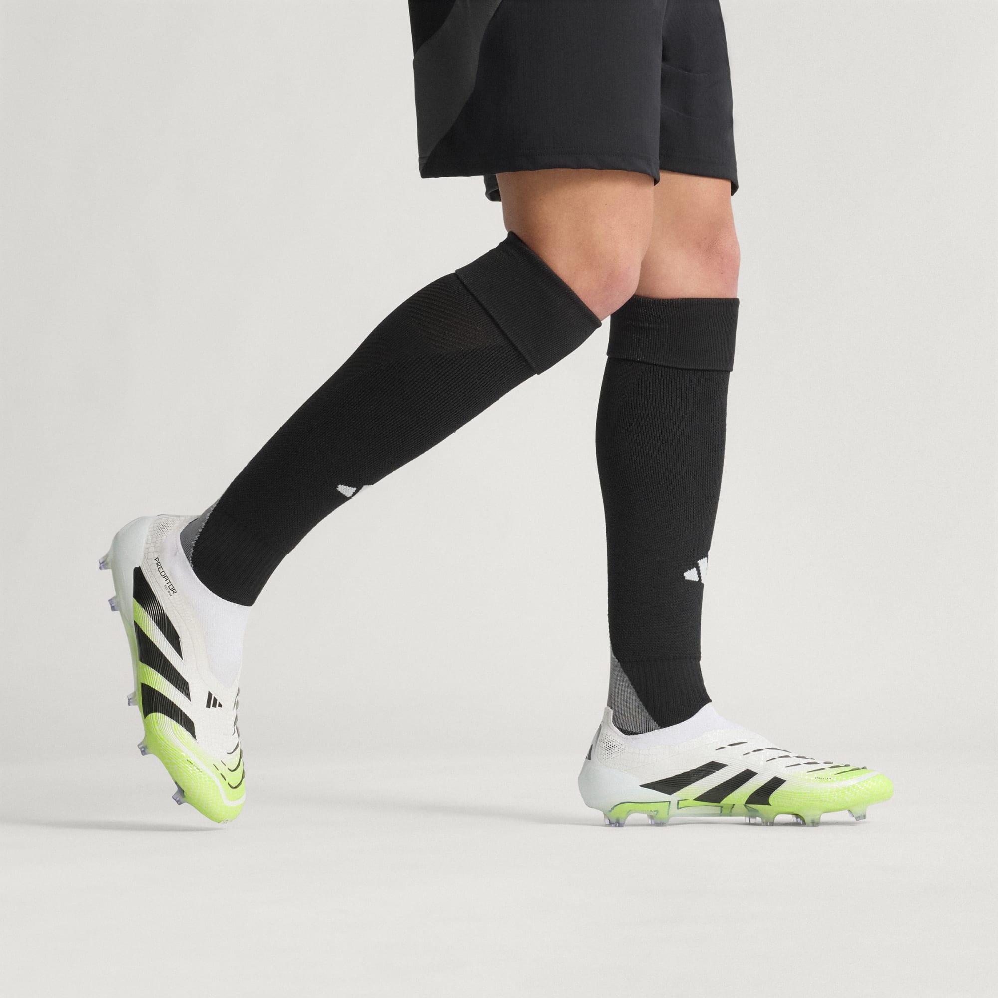 Discover the difference between aiming to score and knowing you will with adidas Predator boots that are crafted for goals. These Elite boots have a HybridTouch upper with strategically placed rubber Strikeskin fins and a laceless construction that help provide perfect contact with the football. The Controlframe 2.0 firm ground outsole and adidas PRIMEKNIT collar are designed to give you a stable stance when the goal's at your mercy.