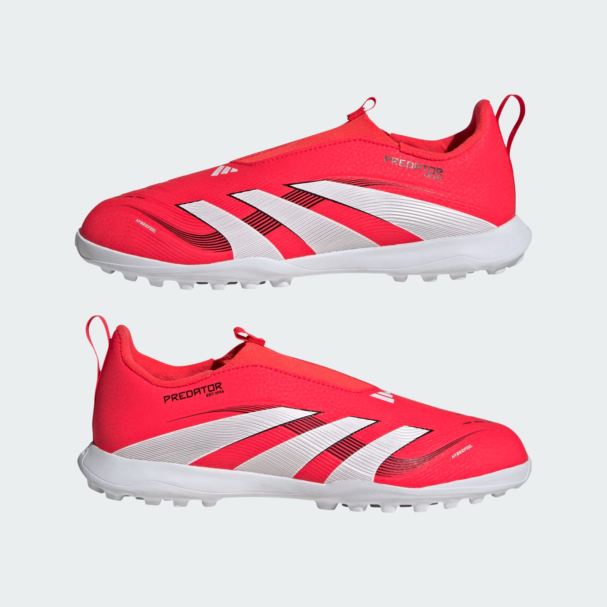 Go into every game knowing you'll score in juniors' adidas Predator League boots crafted for goals. Their Hybridfeel upper incorporates an all-over 3D texture, a laceless construction and grippy Strikescale fins to help you control the football during strikes. A lug rubber outsole ensures you're in the right place at the right time on artificial turf. This product features at least 20% recycled materials. By reusing materials that have already been created, we help to reduce waste and our reliance on finite resources and reduce the footprint of the products we make.