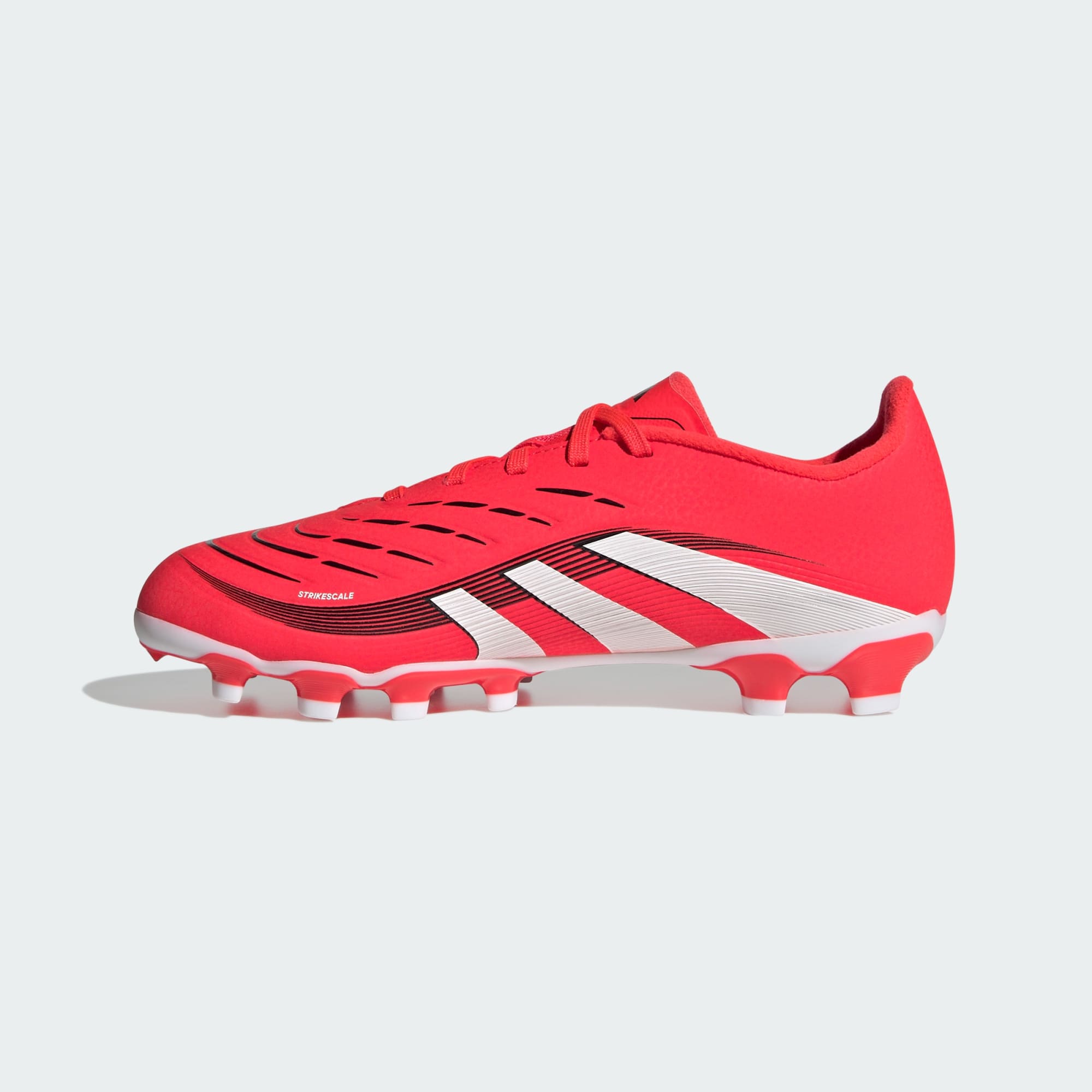 Go into every game knowing you'll score in juniors' adidas Predator League boots crafted for goals. Their Hybridfeel upper incorporates an all-over 3D texture and grippy Strikescale fins to help you manipulate the football during strikes. A versatile outsole ensures you're in the right place at the right time on a variety of surfaces. This product features at least 20% recycled materials. By reusing materials that have already been created, we help to reduce waste and our reliance on finite resources and reduce the footprint of the products we make.