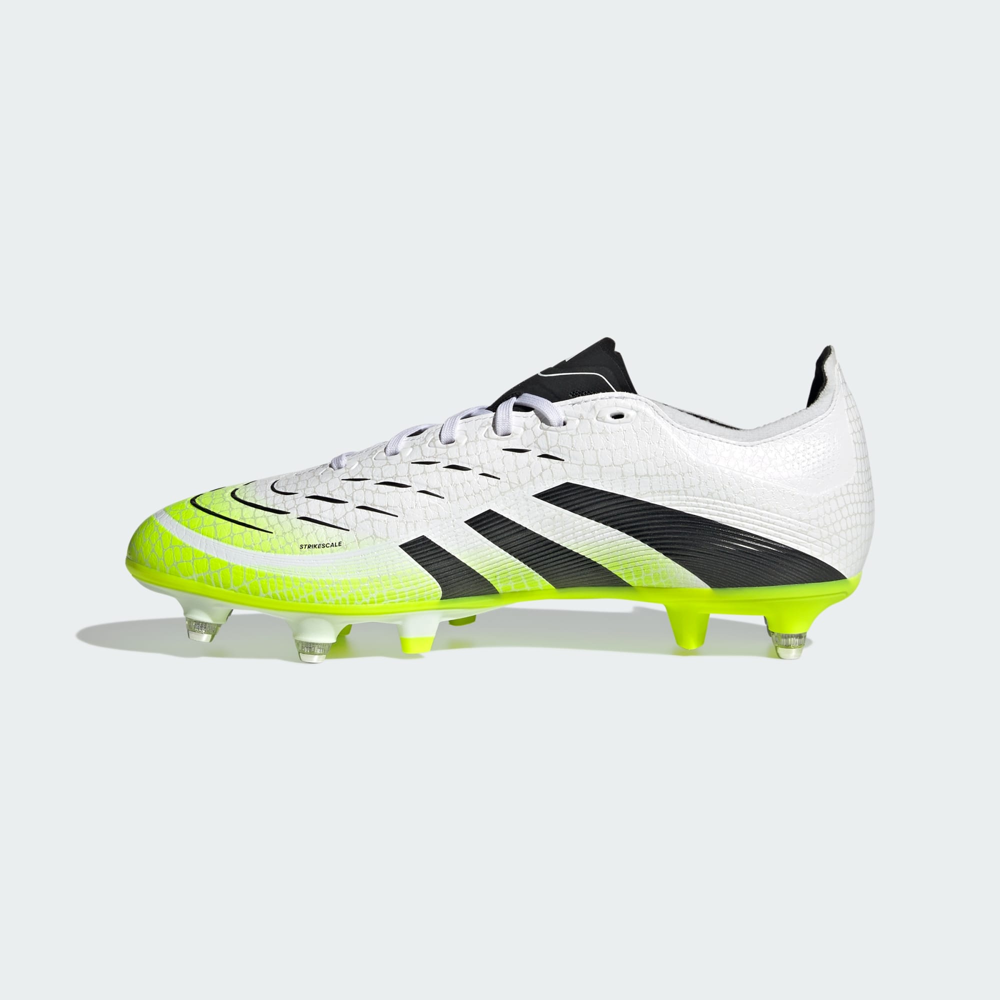 Discover the difference between aiming to score and knowing you will with adidas Predator boots that are crafted for goals. These League boots have a Hybridfeel upper that incorporates an all-over 3D texture and grippy Strikescale fins to help you manipulate the football during strikes. A Controlplate outsole keeps you stable on soft ground.