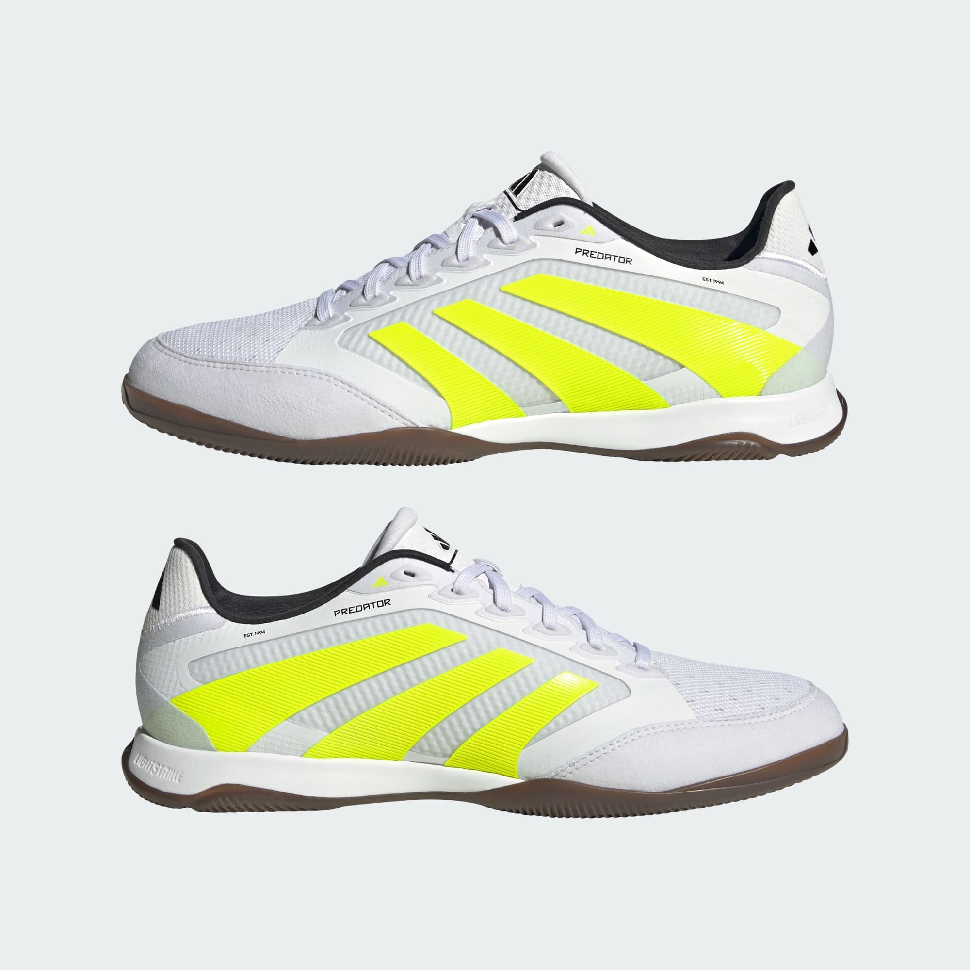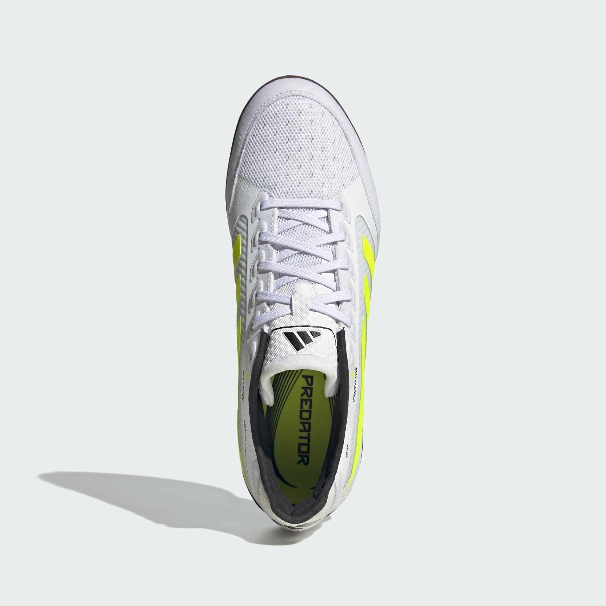 Discover the difference between aiming to score and knowing you will with adidas Predator boots that are crafted for goals. These Pro football boots have a mesh upper that keeps your feet cool and comfortable during lightning-fast indoor football. Sitting on a non-marking rubber outsole, the low-profile Lightstrike midsole supports instinctive play in front of goal.