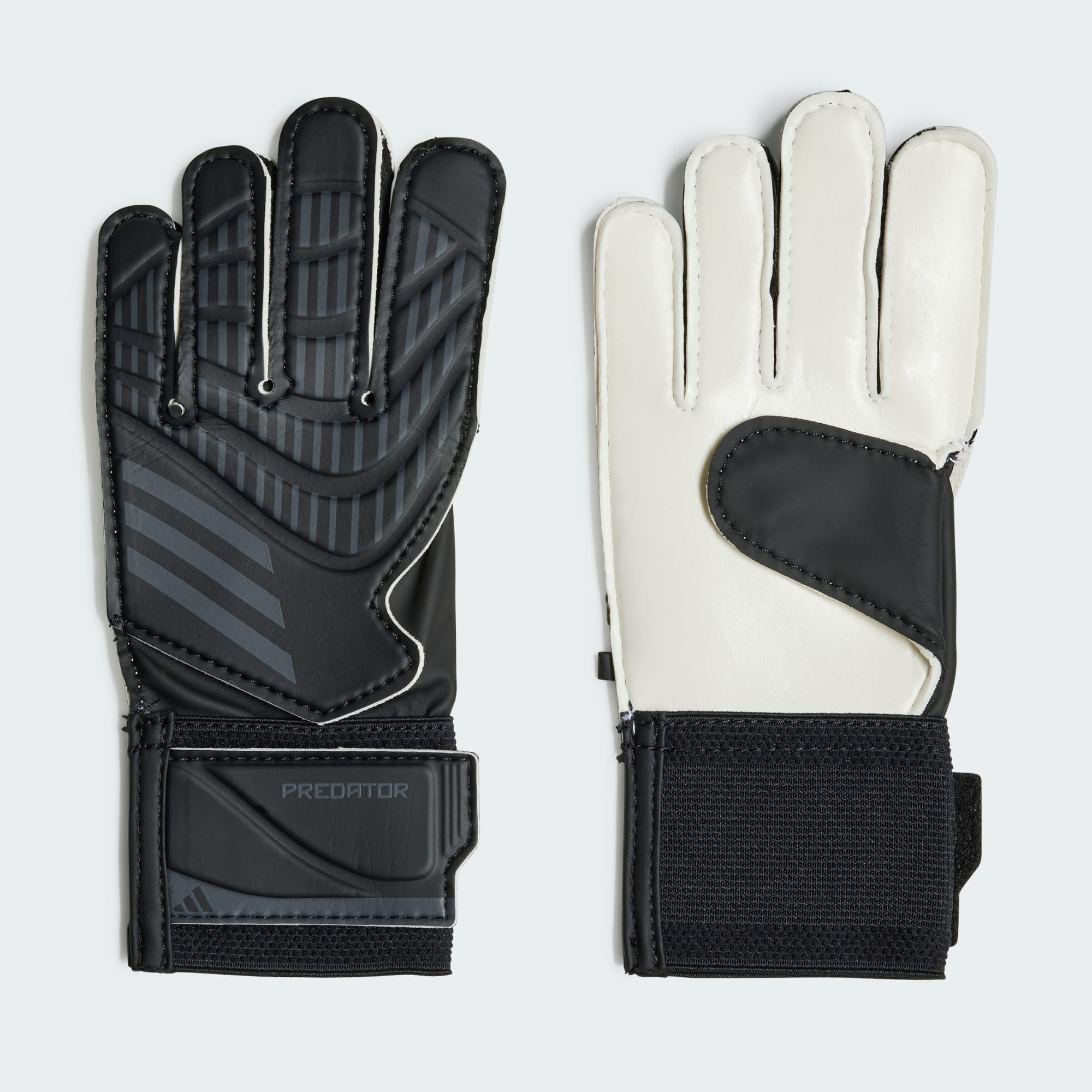 Build up your skills between the sticks. These juniors' adidas Predator Training gloves are for young goalkeepers who are always working on their game. A positive cut at the fingers provides maximum ball contact for grasping crosses and throwing long. The Soft Grip latex palm ensures confident play whatever Mother Nature fires at you.