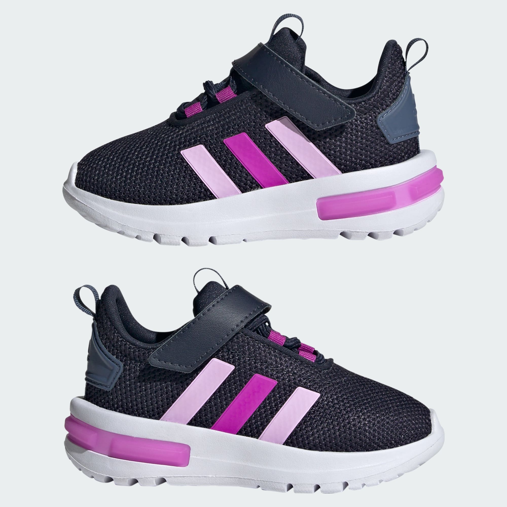For those first wobbly steps, let your little one explore the world in style. These infants' adidas shoes give them the comfort their tender feet need. The Cloudfoam midsole cushions their every step in softness. The sleek look keeps them always looking fresh. Made with a series of recycled materials, this upper features at least 50% recycled content. This product represents just one of our solutions to help end plastic waste.