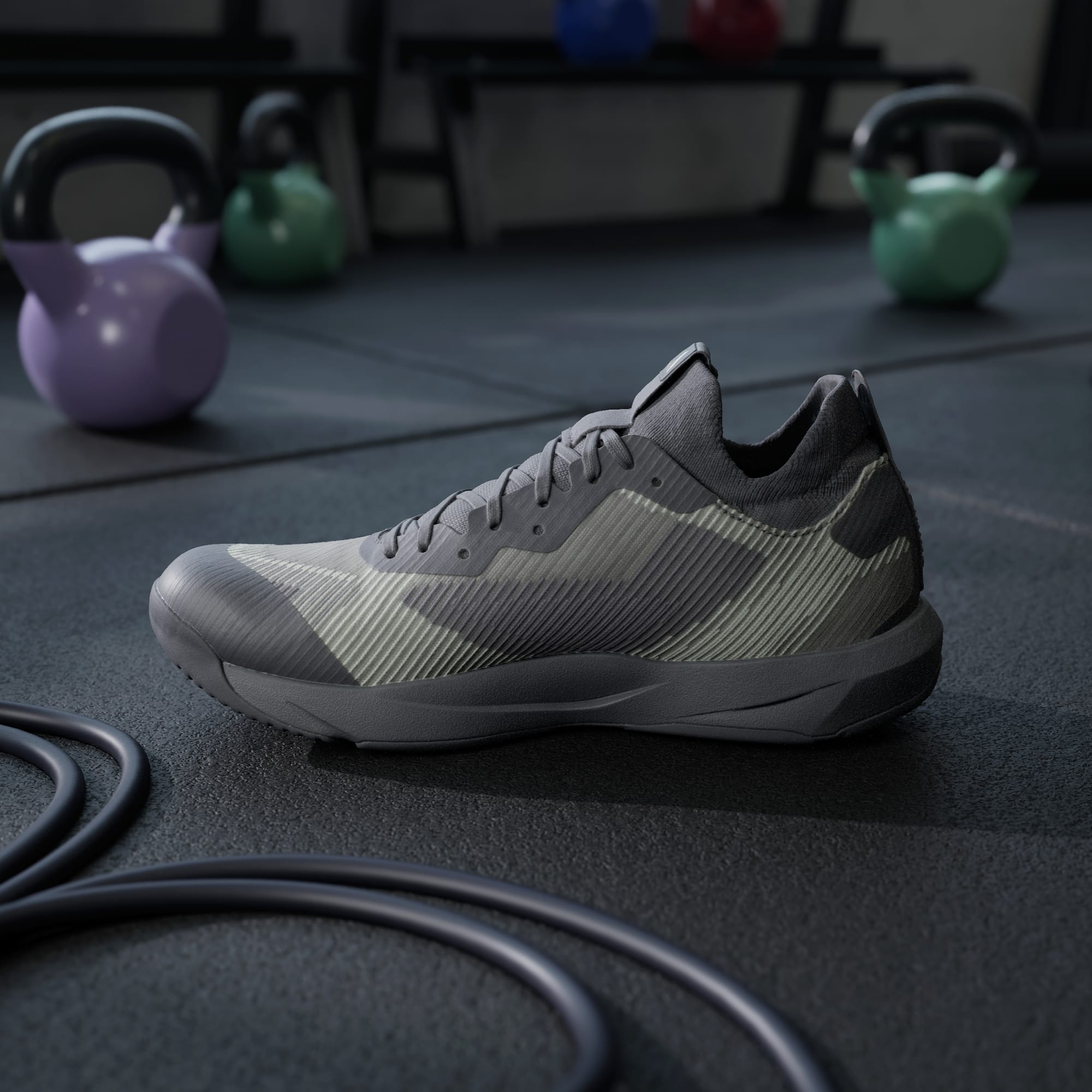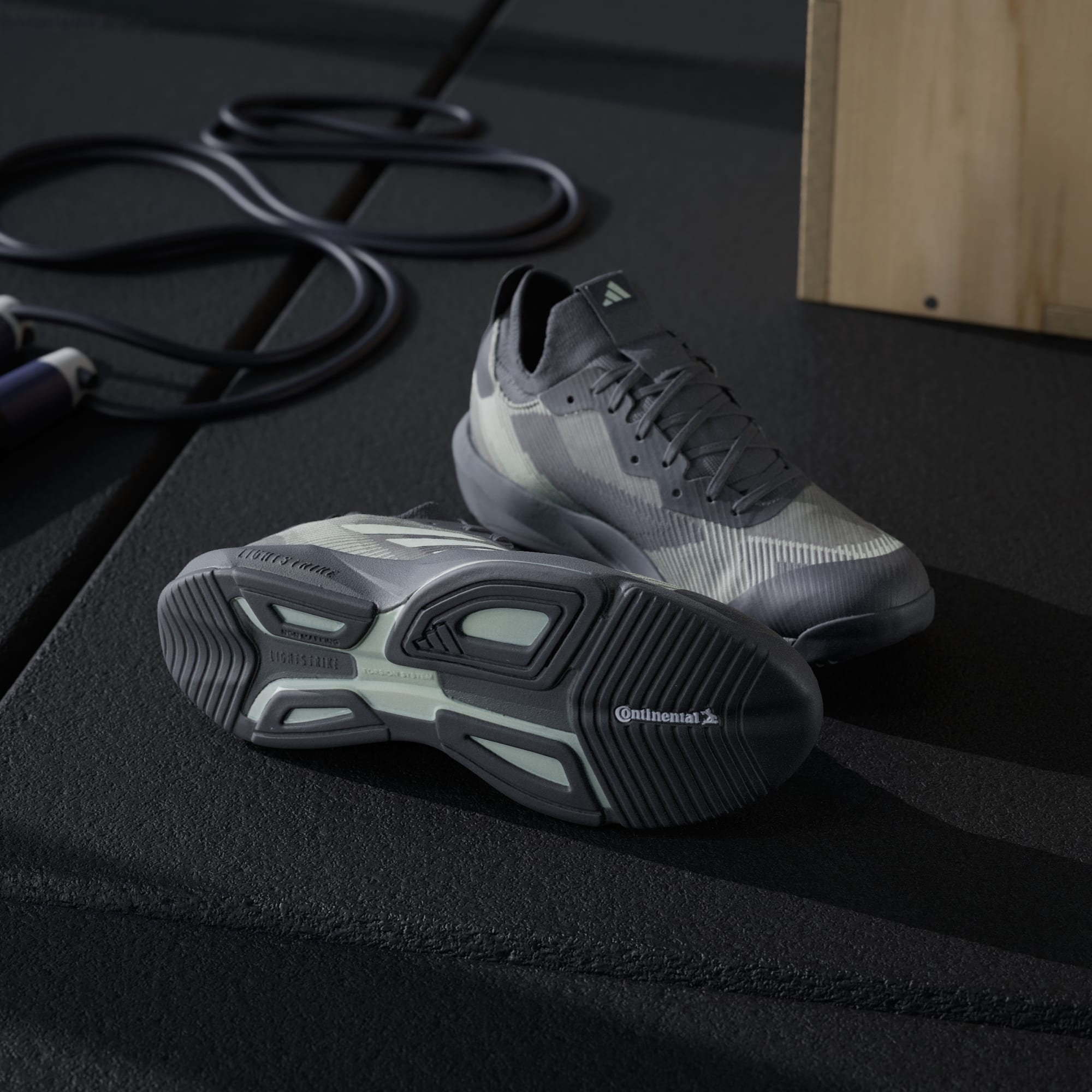 Fly through HIIT classes in shoes you can count on. These adidas training shoes are made for dynamic movement. The engineered knit upper has strategically placed areas of support. Lightstrike cushioning is super lightweight and responsive, and the asymmetrical Torsion System helps keep you stable during quick cuts and multidirectional moves. Made with a series of recycled materials, this upper features at least 50% recycled content. This product represents just one of our solutions to help end plastic waste.