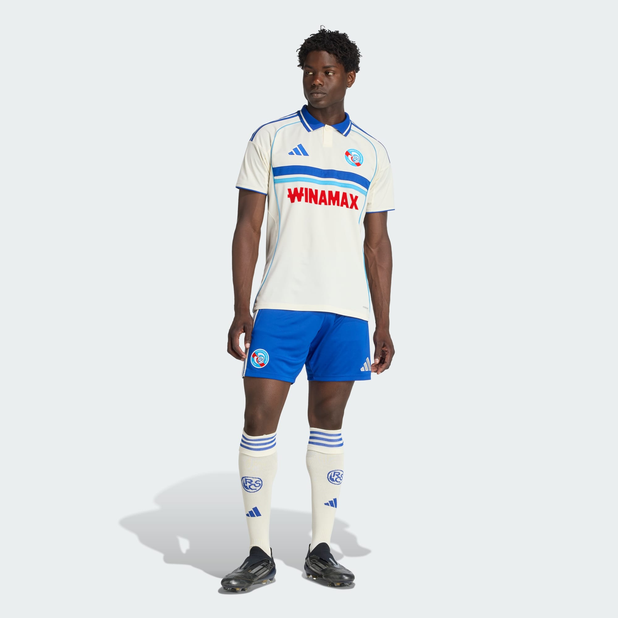The perfect blend of performance and elegance. This adidas RC Strasbourg away jersey has a polo collar and a cream colour palette that's sure to be a firm favourite with fashion-conscious fans. Behind that woven badge on the chest, moisture-managing AEROREADY keeps you comfortable through every twist and turn of football action.