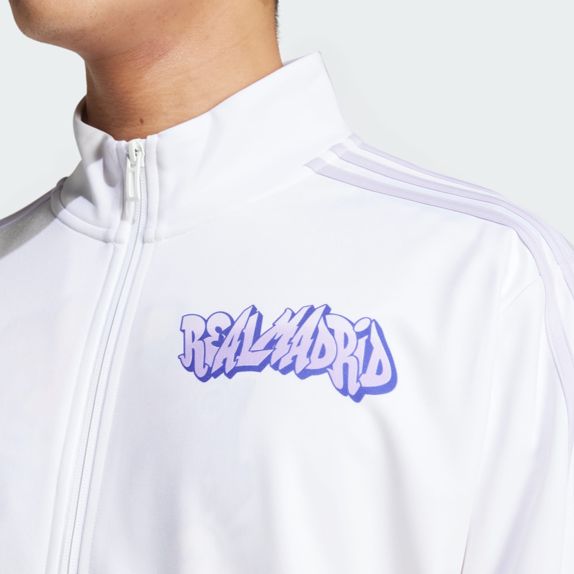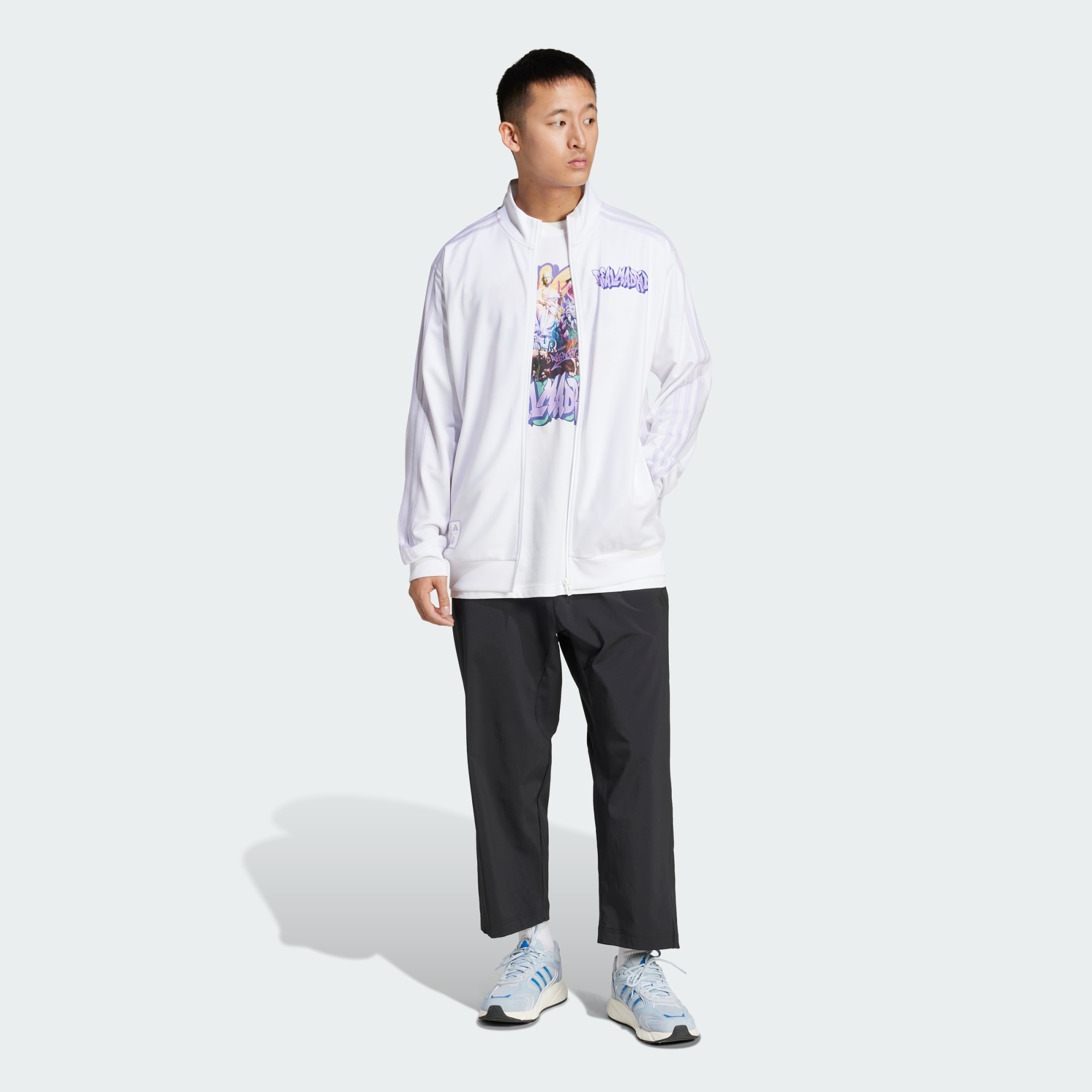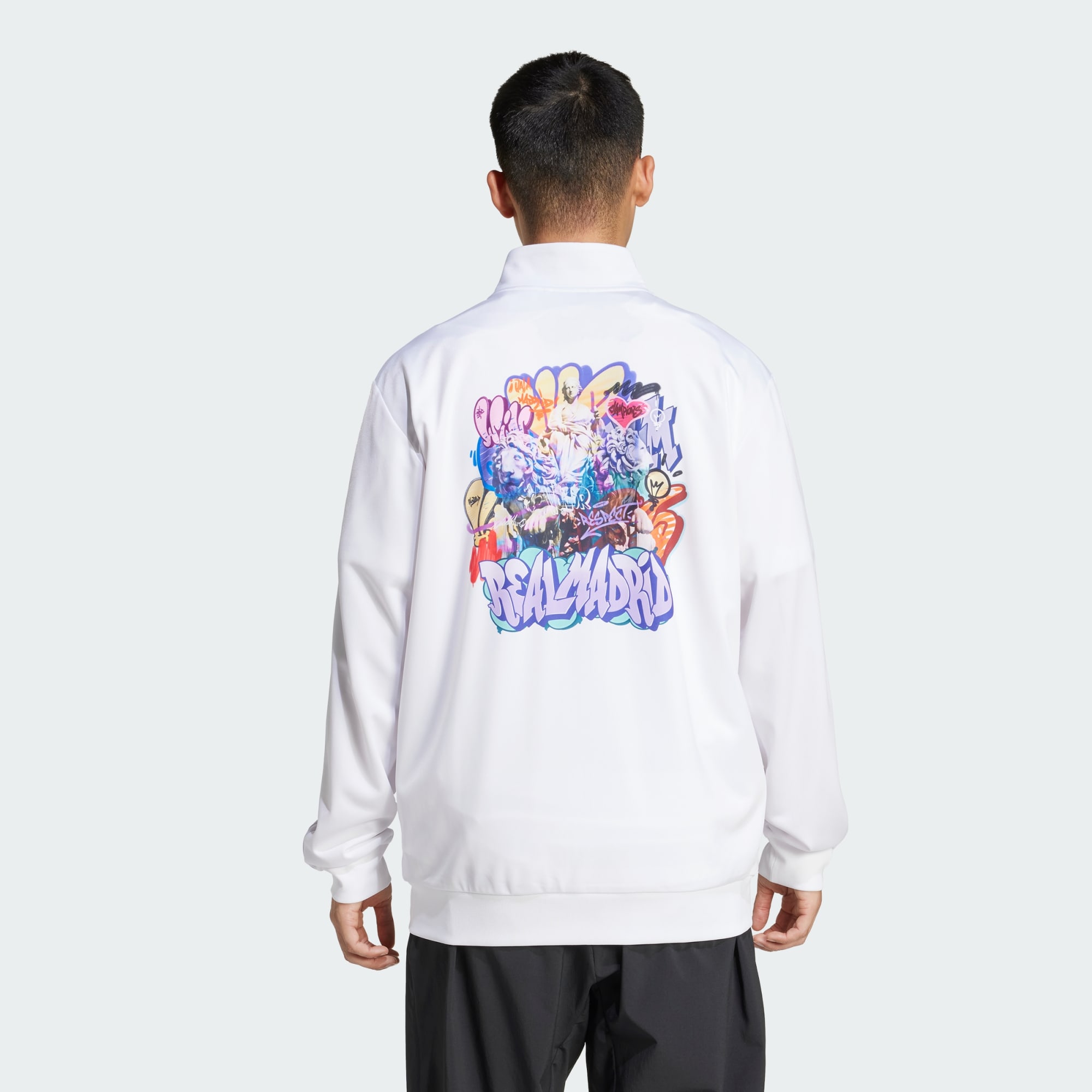 A vibrant Real Madrid track top created in collaboration with artists PichiAvo.
