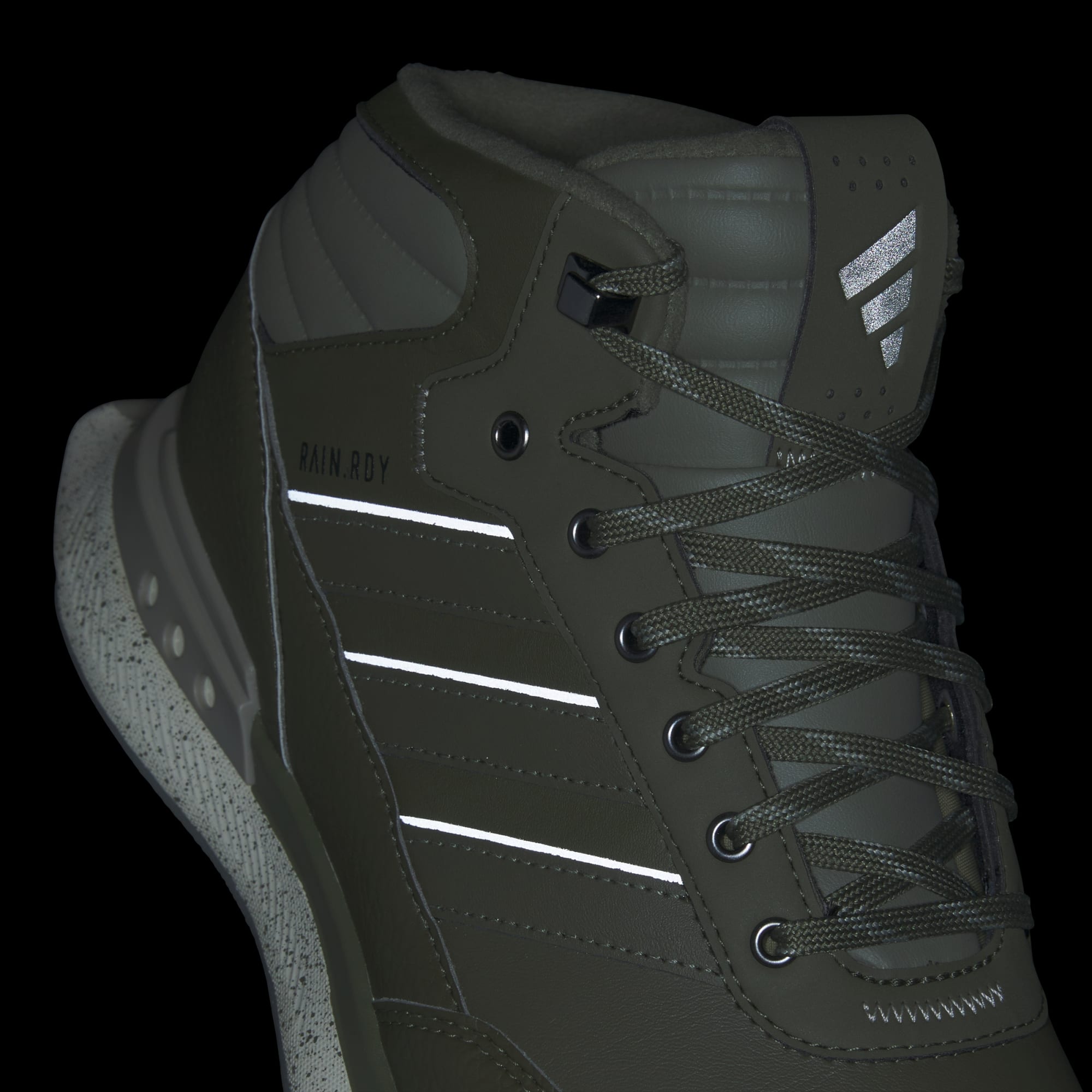 When the forecast calls for rain, step onto the course in these adidas golf shoes and play with confidence. Inspired by classic high-top basketball shoes, these RAIN.RDY shoes keep your feet dry so you can stay focused in wet conditions. Ultralight Lightstrike cushioning delivers full-round comfort while a cleated Adiwear outsole grips wet grass for a solid stance on every swing.