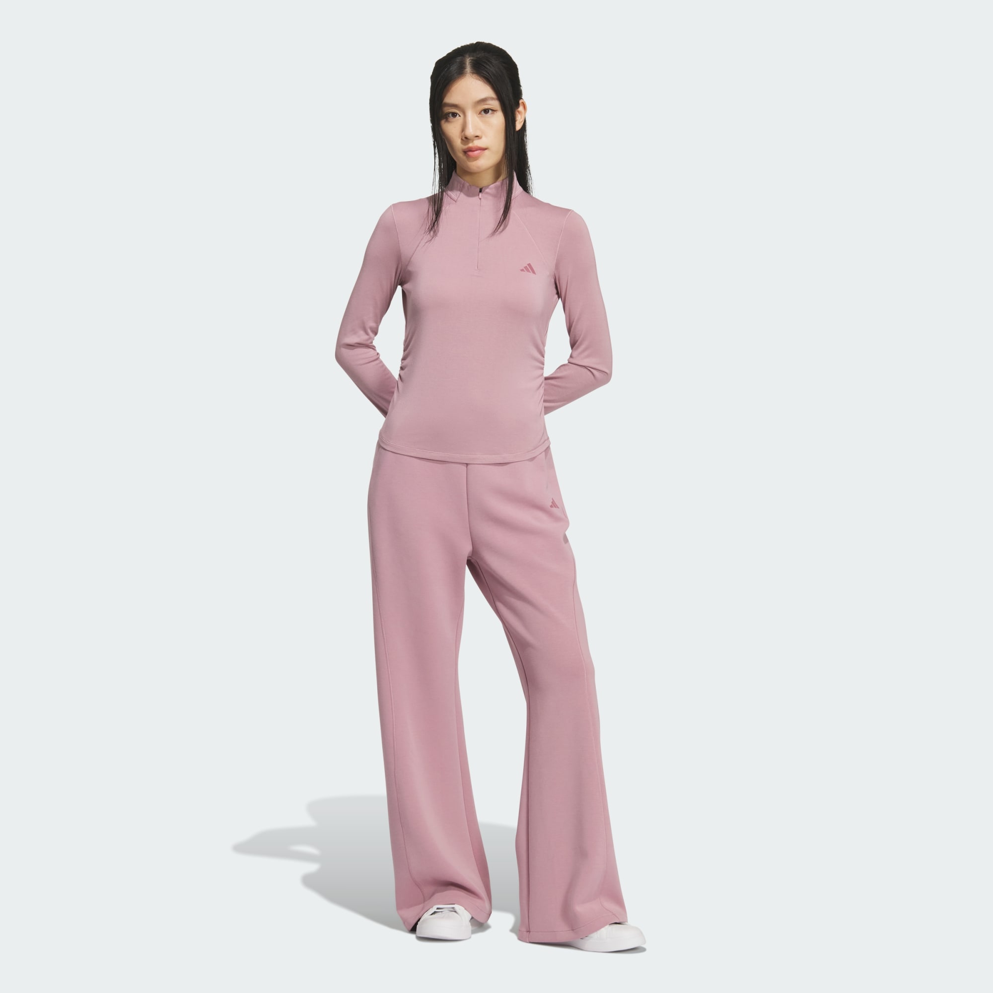 Designed with care, our Slim Long Sleeve Tee is a versatile layer with a sleek silhouette. Offering a soft touch against the skin, the slim fit provides classic comfort. With a short length and a half zip, this t-shirt can be worn as a chic layer or standout solo piece. The gathered waist and curved hem highlight our attention to the finer details. The concealed zip provides a clean look, while thumbholes add styling options for cooler days. With an iconic 3 Bar Logo print for authenticity, this t-shirt embodies adidas style.