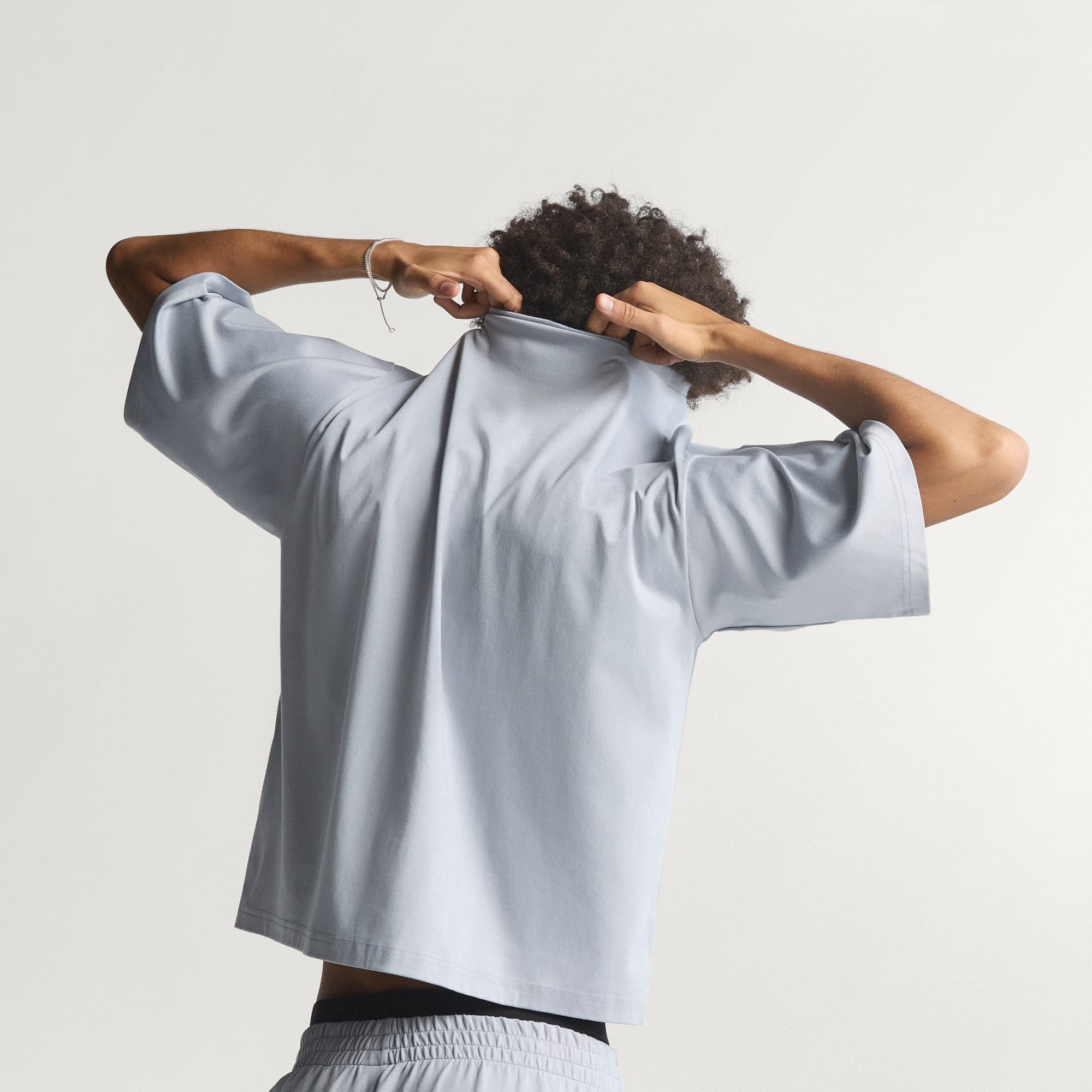 Loose-fitting, elegant t-shirt with a smooth, refined texture for comfort.