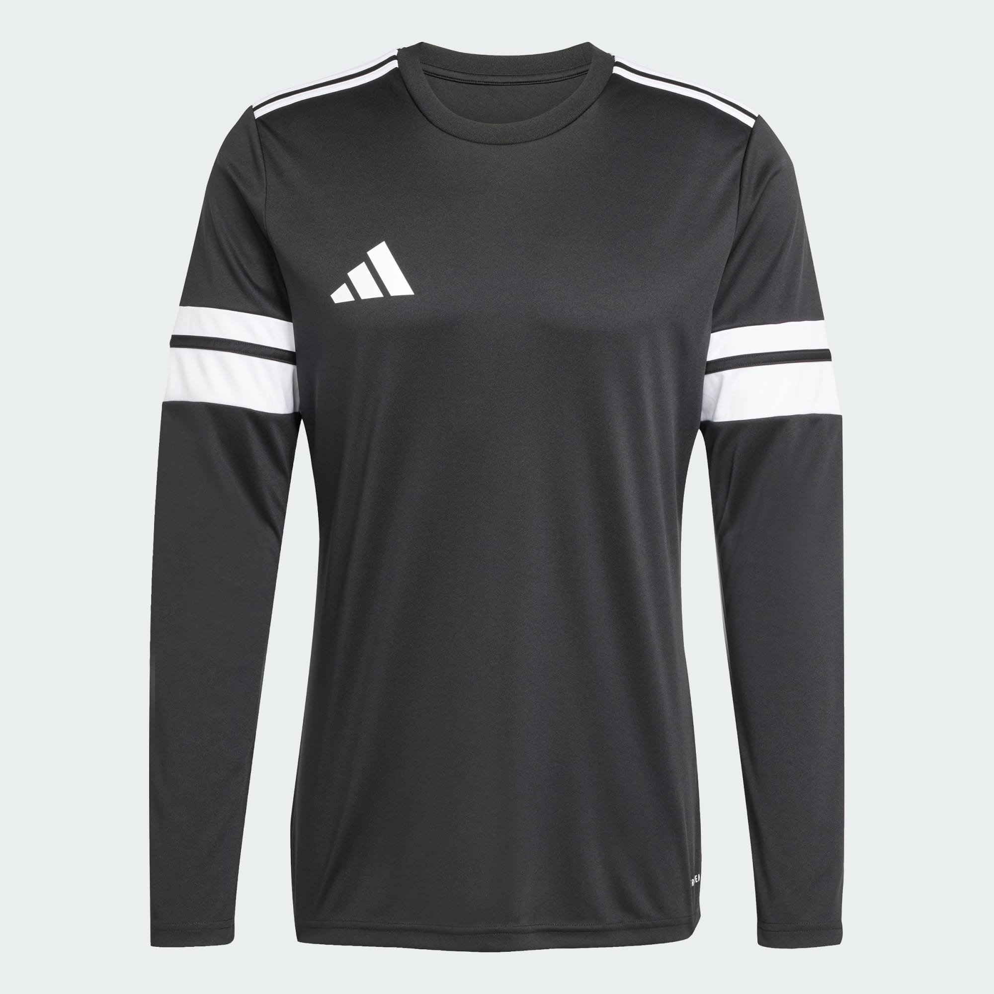 Feel like a team in a long sleeve adidas jersey that's all about unity on the football field. Pairing a ribbed crewneck with those iconic 3-Stripes on the shoulders, it keeps things clean to leave space for you to add your own team details. Working hard in the background, AEROREADY controls moisture levels so you're always on top of your game. This product is made with 100% recycled materials. By reusing materials that have already been created, we help to reduce waste and our reliance on finite resources and reduce the footprint of the products we make.