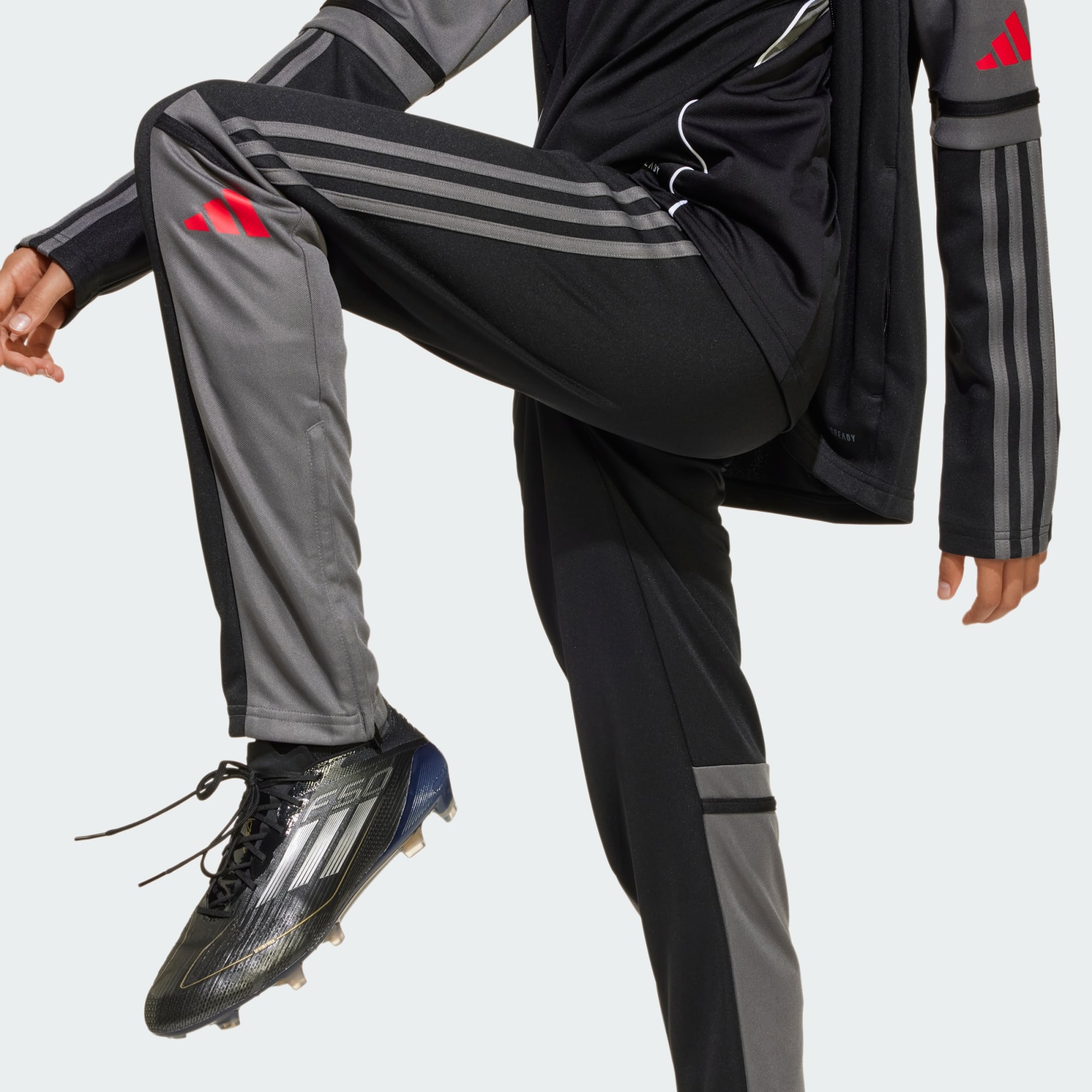 Take the training pitch by storm in these juniors' adidas pants. Part of a Squadra 25 range focused on amateur football, they're ideal for when you need an extra layer. AEROREADY manages moisture to keep you dry and comfortable when sessions go into overdrive. Ankle zips make them easy to peel off when you're up to temperature. This product is made with 100% recycled materials. By reusing materials that have already been created, we help to reduce waste and our reliance on finite resources and reduce the footprint of the products we make.