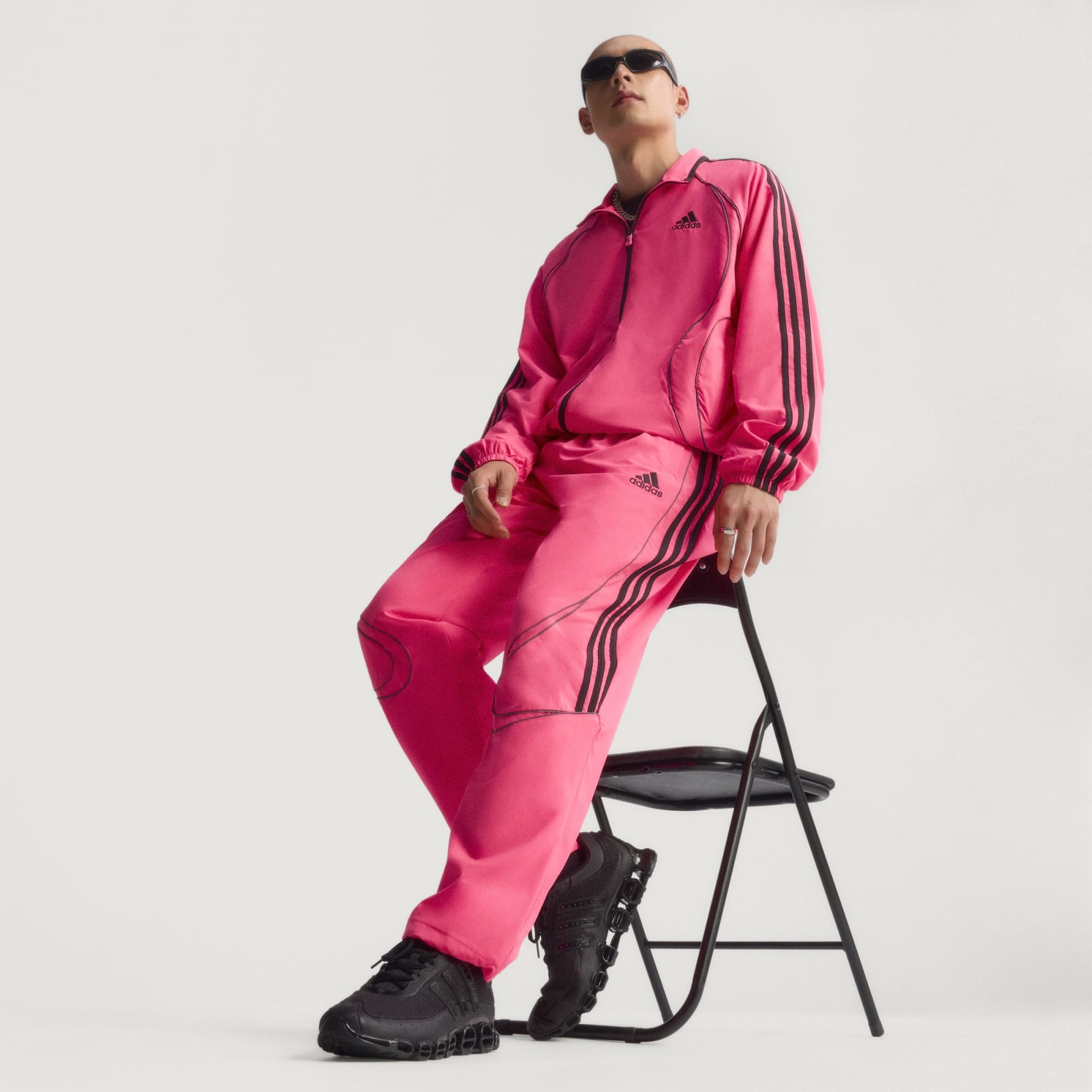 Loose-cut track pants with style cues from '00s football.