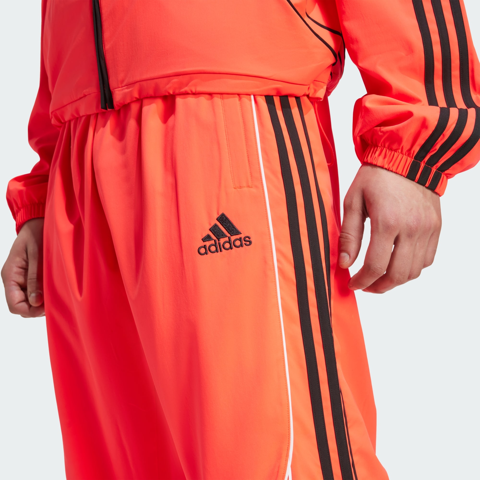 These adidas track pants are an essential addition to any laid-back look. They have a loose shape for maximum comfort and a casual vibe. The woven polyester fabric is smooth and lightweight. They're finished with 3-Stripes down the sides and an embroidered Trefoil under the pocket — signature details that root this pair in sport.